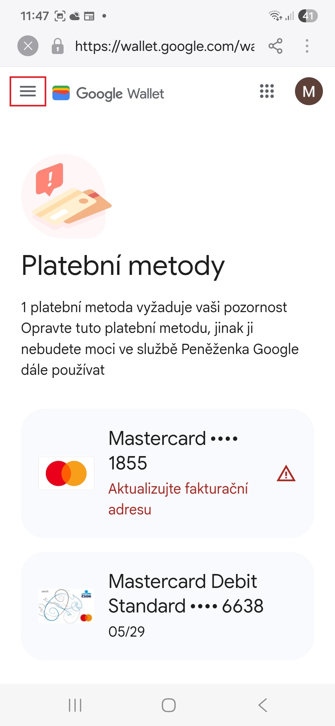 Jedním z důvodů, proč Peněženka nemusí fungovat, je její zastaralá verze. Zkontrolujte, jestli pro ni není dostupná aktualizace, který by mohla problémy s fungováním vyřešit. To učiníte takto: