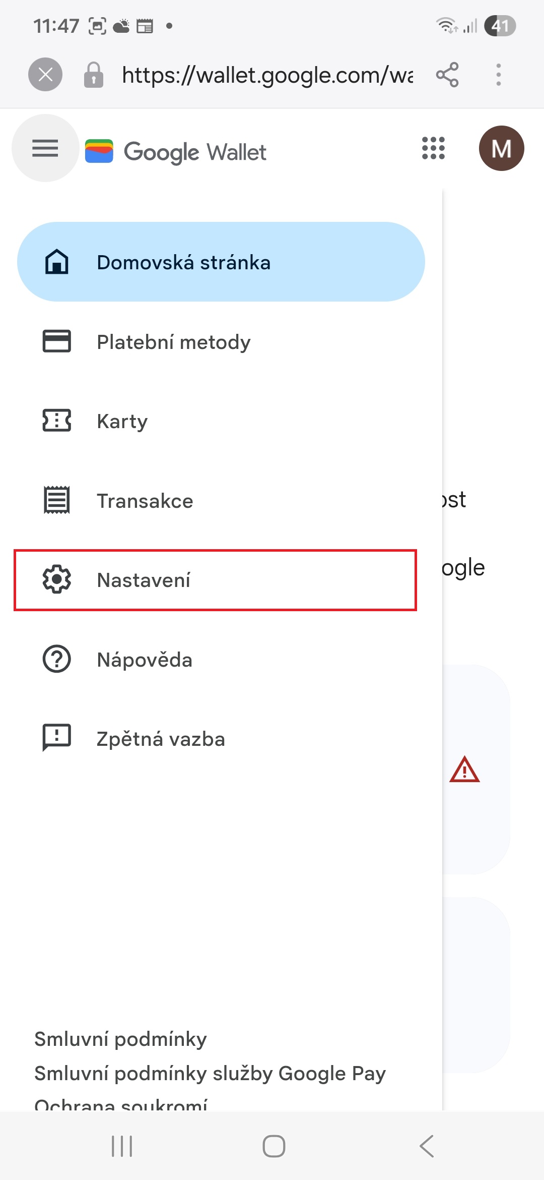 Každá mobilní aplikace se při každodenním používání občas může „zadrhnout“ a nefungovat tak, jak má, což se týká i Peněženky. To může vyřešit vymazání mezipaměti. Postup je následující: