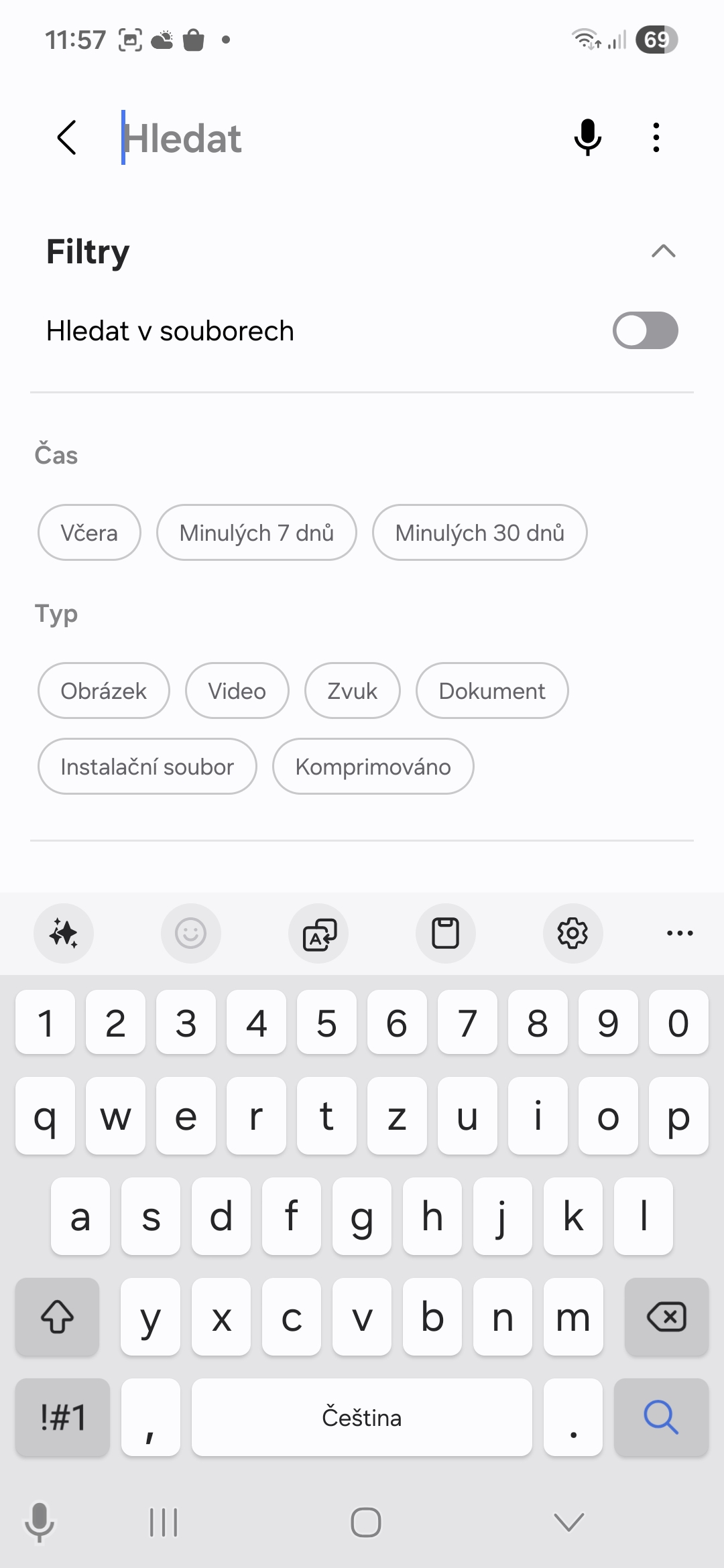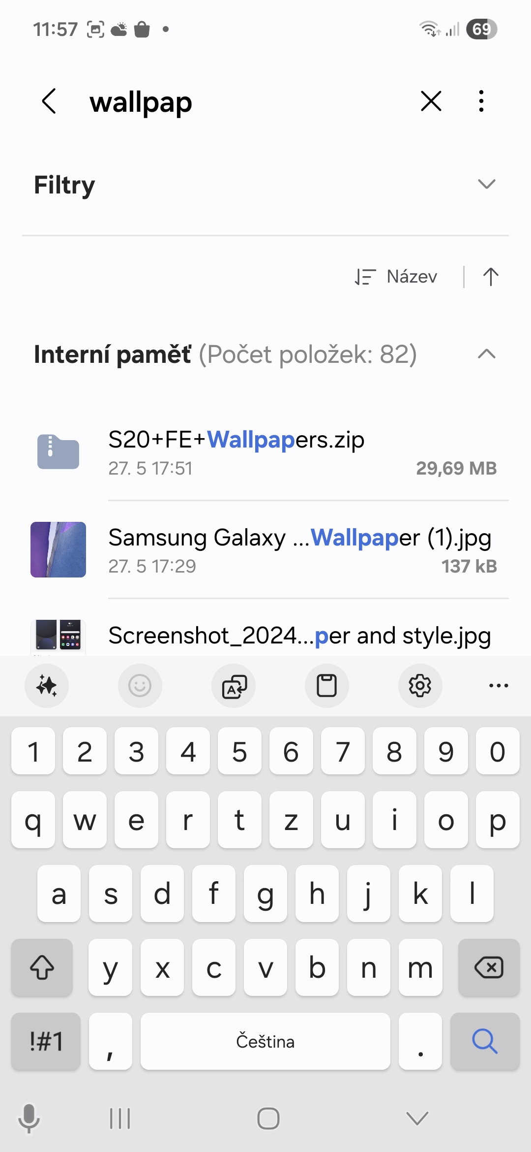 - Pokud znáte název souboru, klepněte na ikonu Hledat v pravém horním rohu.