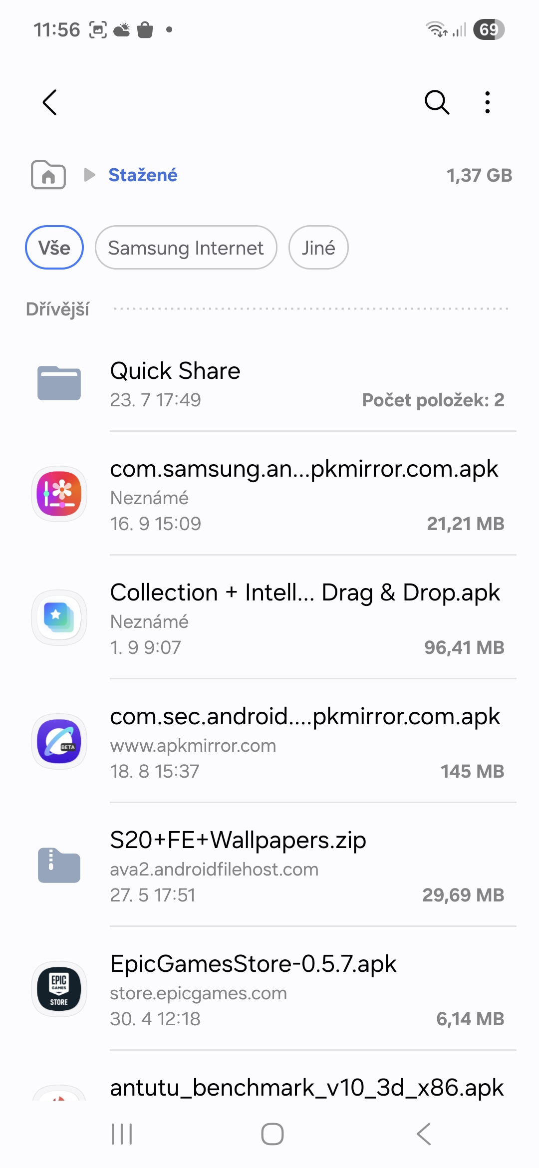 - Přejděte do kategorie Stažené a vyhledejte stažené soubory z webového prohlížeče. Soubory APK stažené ze zdrojů třetích stran najdete v kategorii Instalační soubory. Klepnutím na soubor APK spustíte proces instalace.