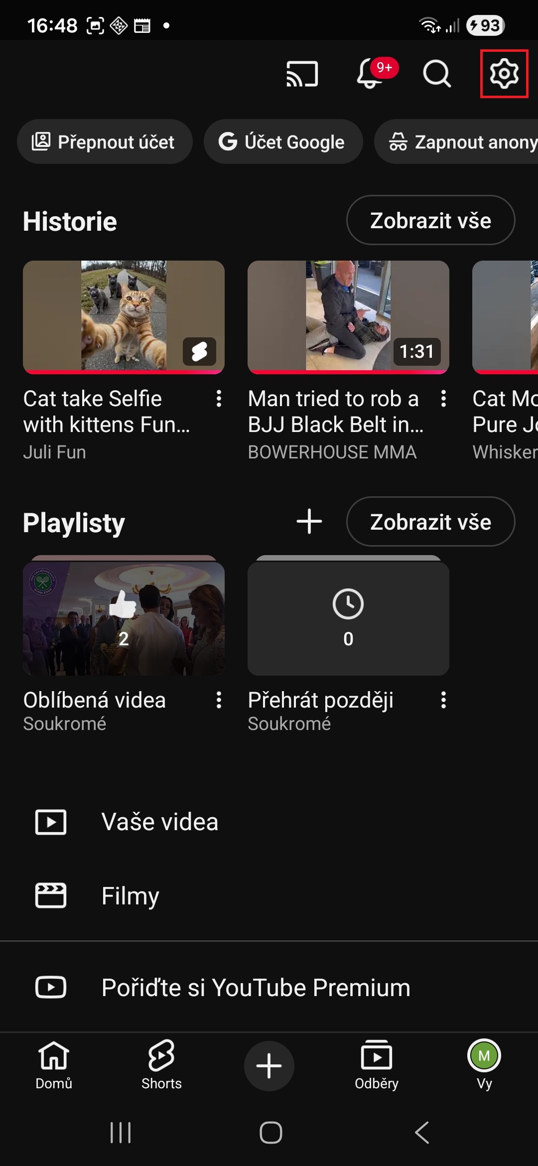 - Vpravo nahoře klepněte na ikonu ozubeného kolečka (Nastavení).