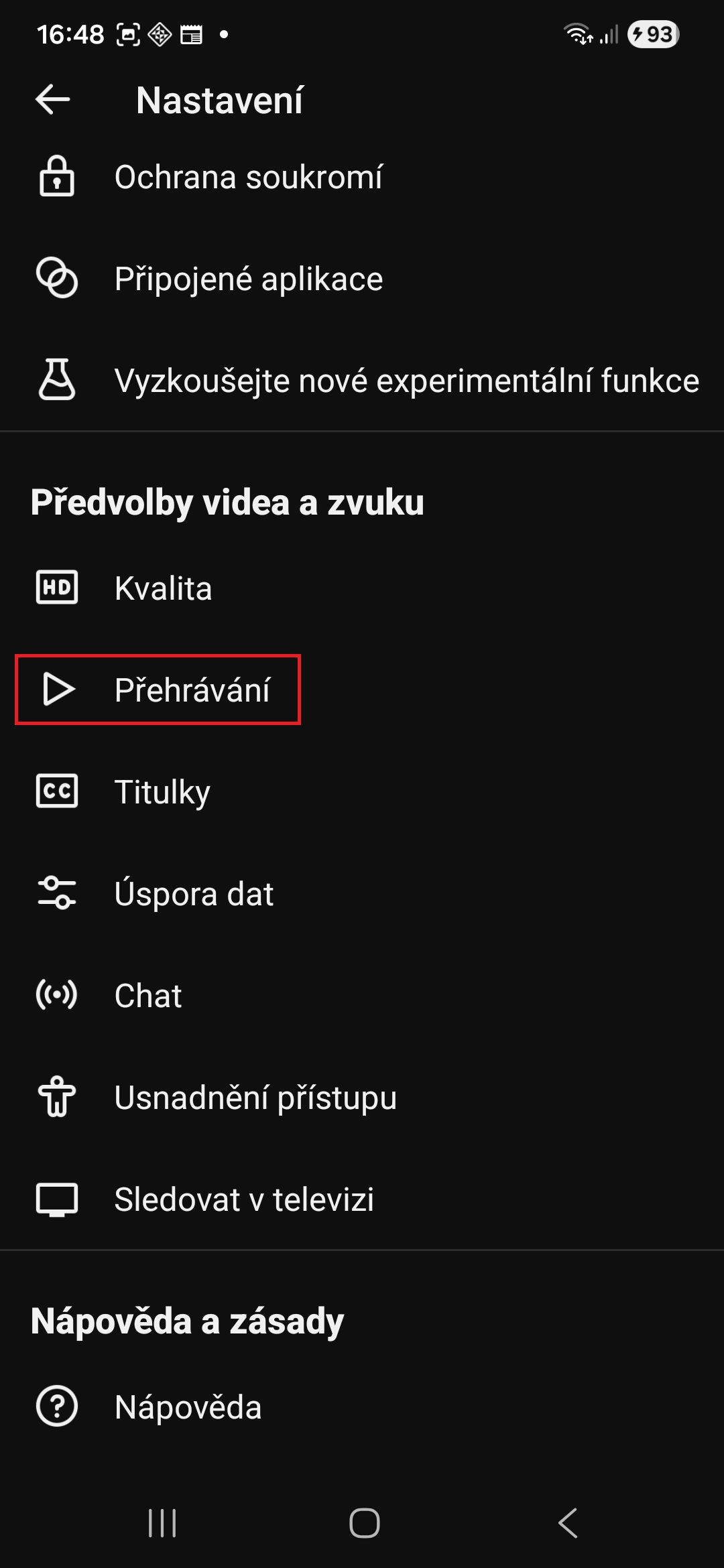 - Klepněte na možnost Přehrávání.