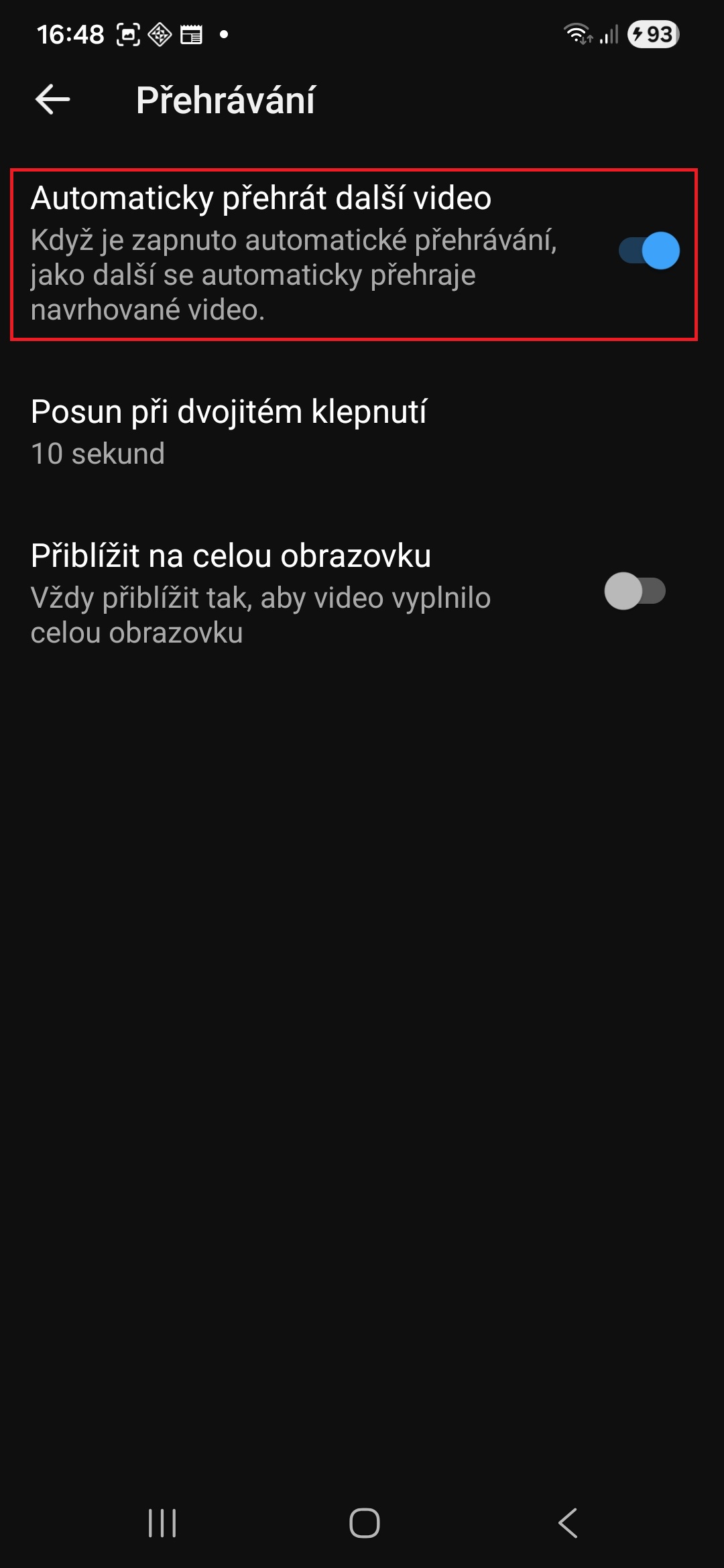 - Vypněte přepínač Automaticky přehrát další video.