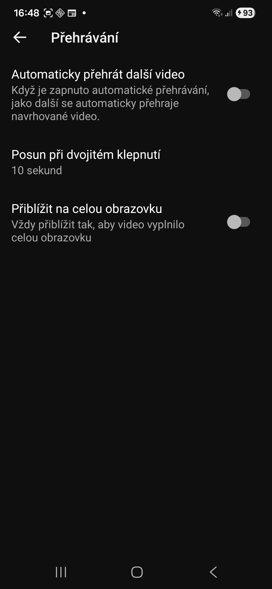 Každé video na YouTube je samozřejmé možné přehrát v režimu celé obrazovky (viz příslušná ikona vpravo dole), zdaleka ne každé však skutečně vyplní celý displej. Nevzhledných pruhů po stranách se naštěstí můžete jednoduše zbavit pomocí gesta pinch-to-zoom. Oddalujte od sebe dva prsty tak dlouho, dokud se neobjeví hláška „Zvětšeno na celou obrazovku“. Stažením prstů se pak obraz zmenší na původní velikost.