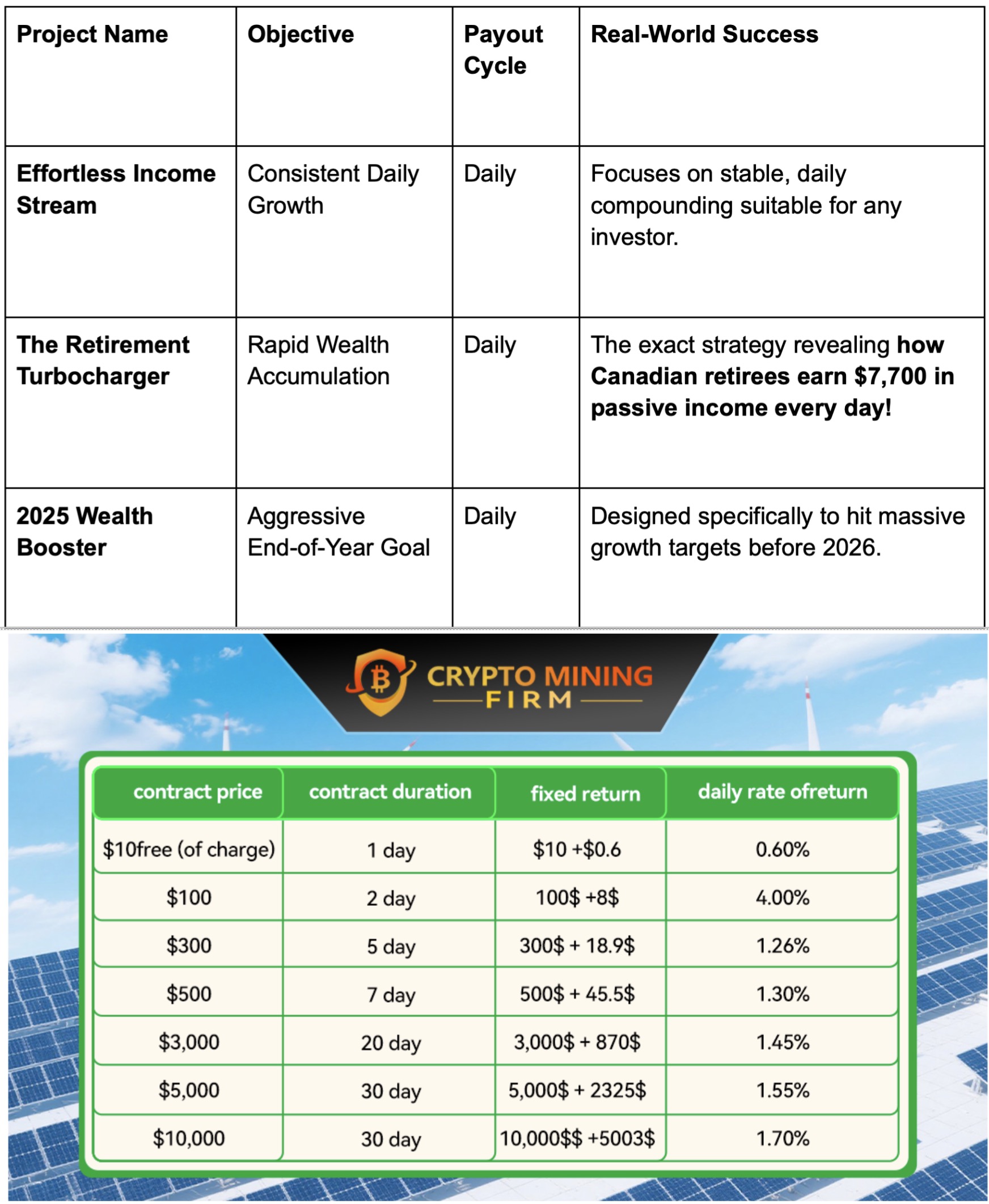 Our investment projects are built on the core principle of daily passive income, showing you what is truly possible: