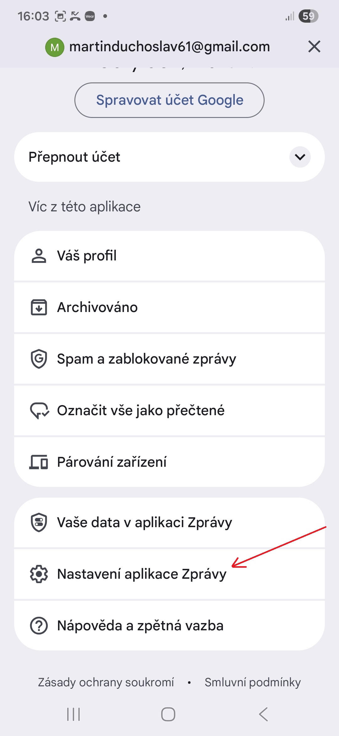 - Klepněte na „Nastavení aplikace Zprávy“.