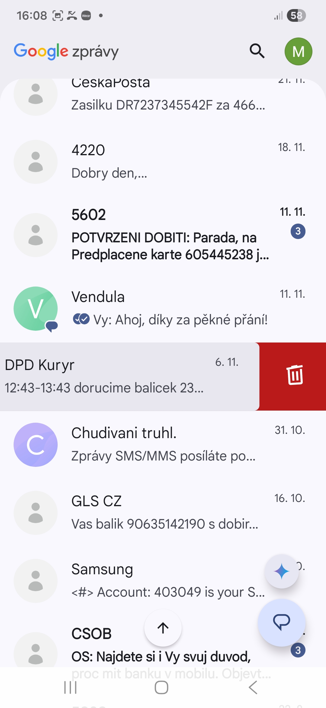 Jak si ve Zprávách Google přizpůsobit gesto přejetí prstem
