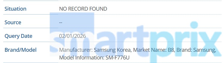 V databázi IMEI se objevila modelová čísla SM-F976U (kódový název Q8) a SM-F776U (kódový název B8), která odpovídají konvenci pojmenování produktů Samsungu, a zřejmě jde o letošní skládací smartphony Galaxy Z Fold8 a Z Flip8. Písmeno „U“ znamená, že zařízení jsou určena pro americký trh.