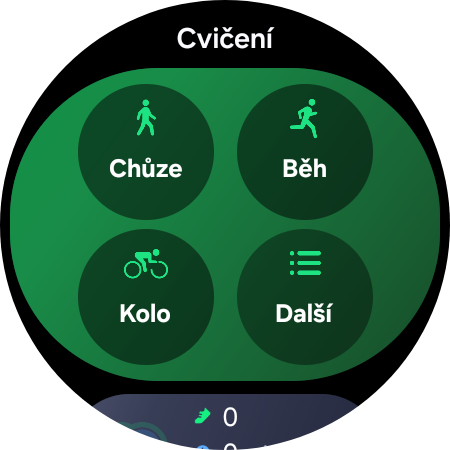 • Vyberte dlaždici, ke které chcete přidat vlastní, může to být kterákoli z dostupných, jako je Cvičení, Zdraví, Tělo či Počasí.