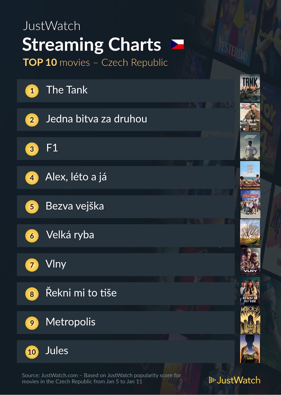 Video stream minulého týdne totálně ovládlo Prime Video. Zvítězilo totiž mezi filmy i seriály. V prvním případě jde o snímek The Tank odehrávající se na východní frontě roku 1943. Posádka německého tanku Tiger má splnit nebezpečný úkol daleko za přísně střeženou frontovou linií. Cestou přes smrtící zemi nikoho musí čelit nejen nepříteli, ale také svým vnitřním démonům. Dvojkou byla Jedna bitva za druhou z HBO Max a trojkou F1 z Apple TV.