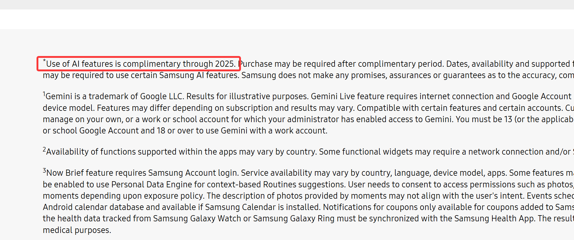 Ačkoliv jeho zástupce už v roce 2025 oznámil, že Galaxy AI bude nadále zdarma, pravděpodobně se to nebude týkat celého balíku služeb. Zatímco ty základní budou stále bez poplatku, ty lepší se už brzy mohou ocitnout za platební bránou. Samsung už k tomuto řešení nakročil tím, že změnil dosavadní podmínky používání Galaxy AI. Nově v nich podle zjištění leakera s přezdívkou Universe Ice stojí, že: „Základní funkce Galaxy AI poskytované společností Samsung jsou zdarma.“