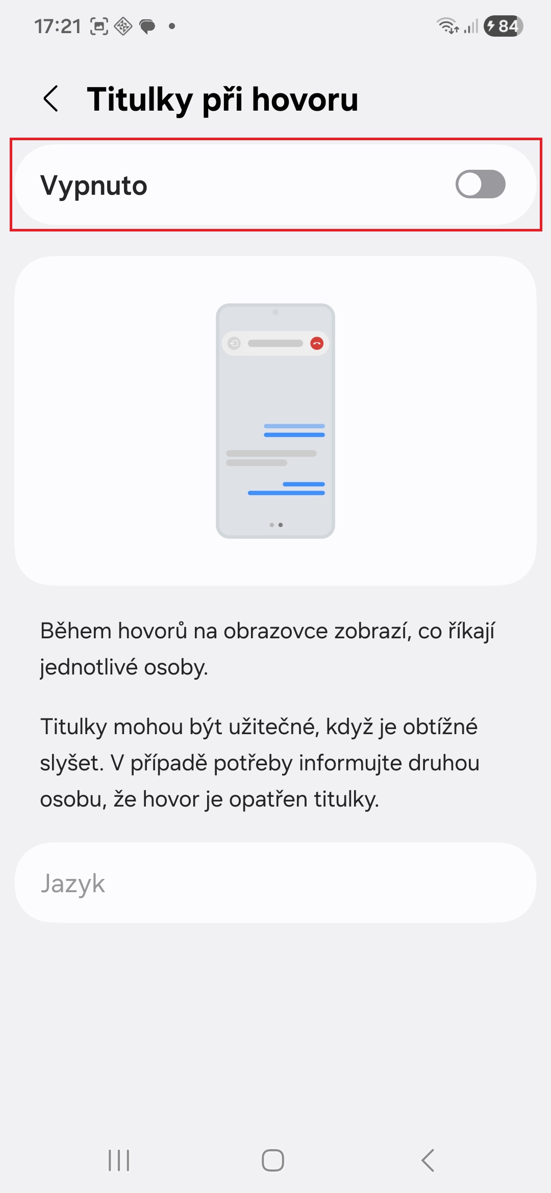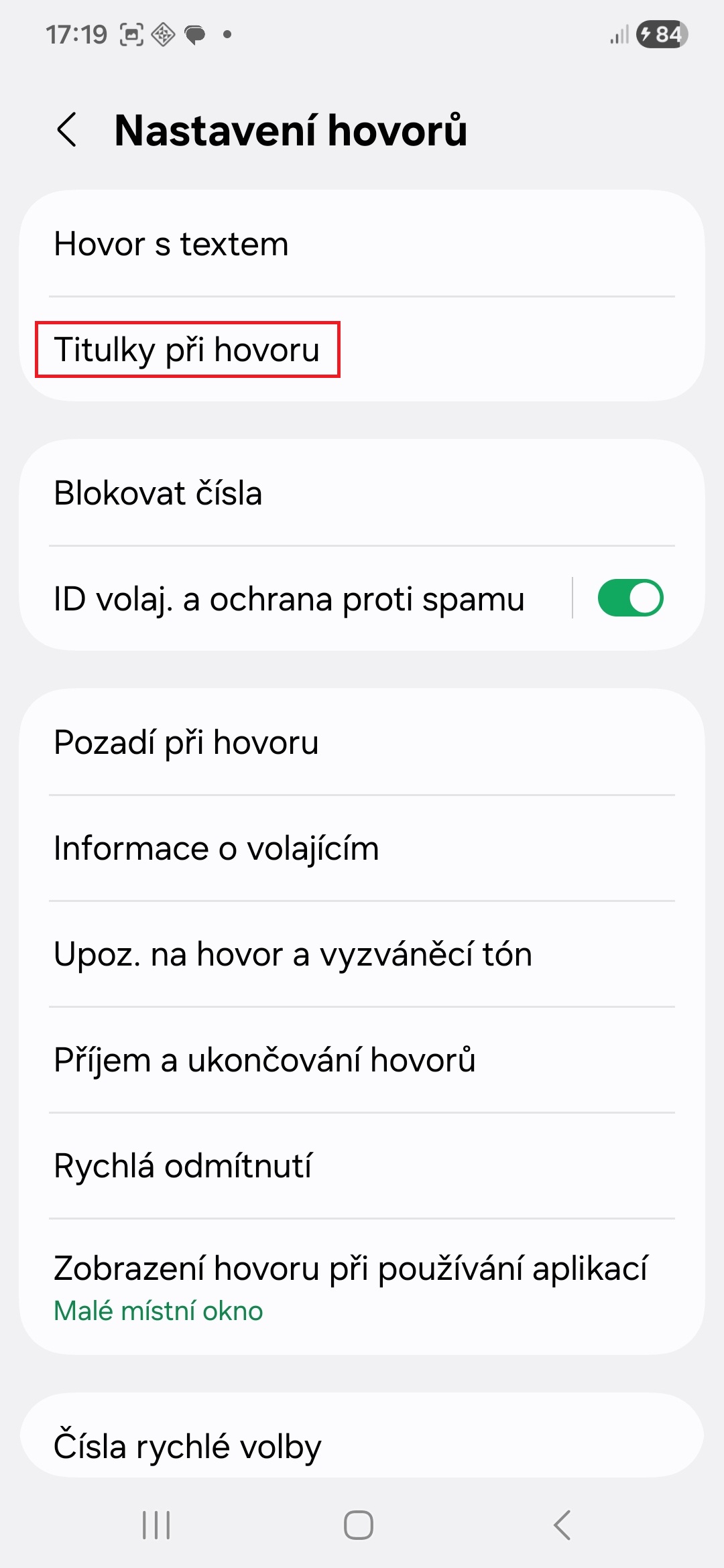 Jak na Samsung telefonu zapnout funkci Titulky při hovoru