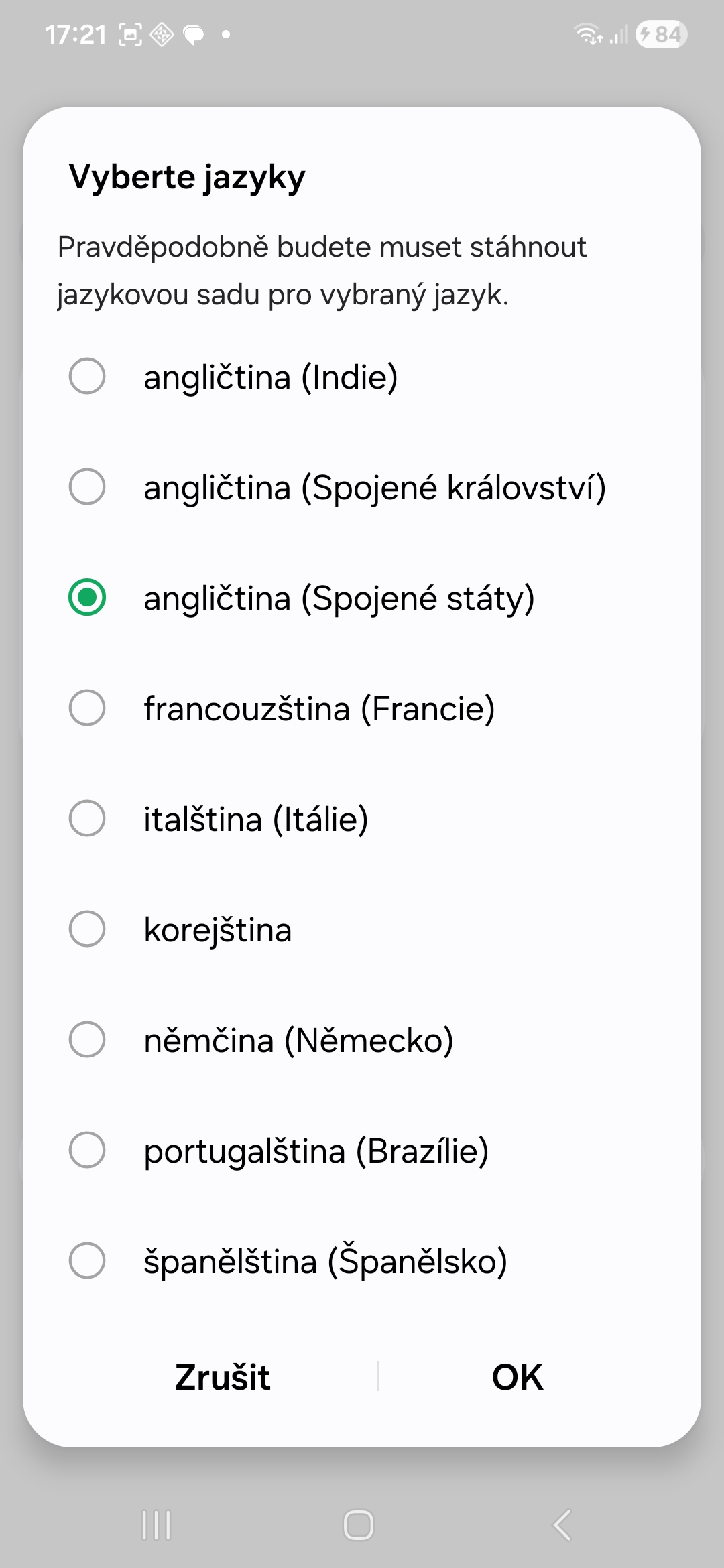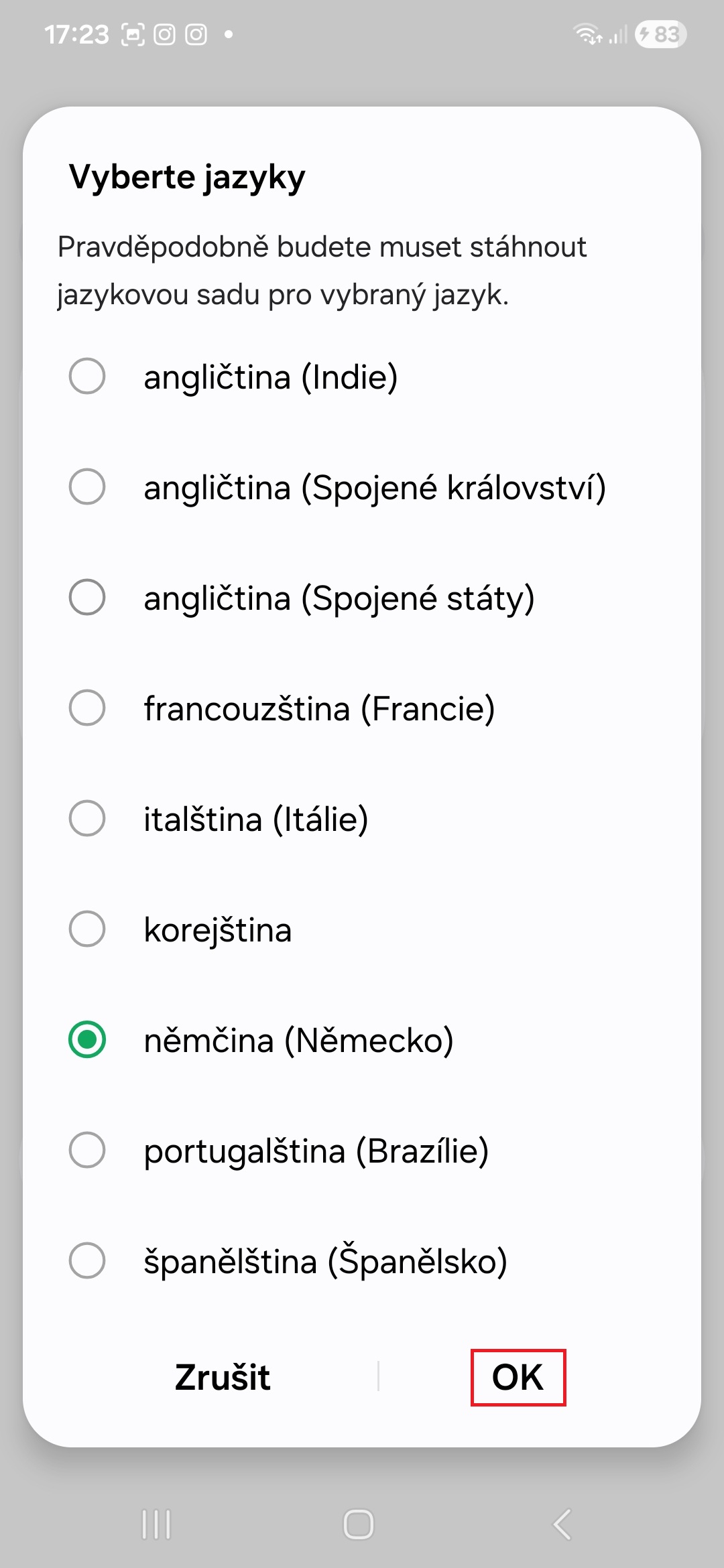 - Vyberte jazyk, který se má v titulcích zobrazovat, a poté na tlačítko OK.