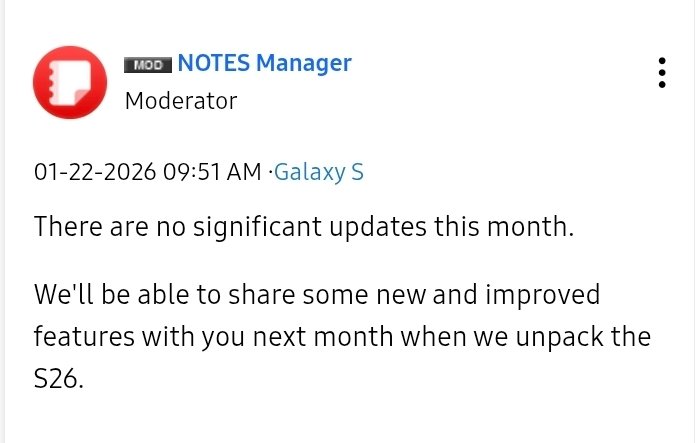 To, že Samsung svou Unpacked akci skutečně chystá, že se bude týkat telefonů řady Galaxy S26 a že proběhne příští měsíc, prozradila jeho aplikace NOTES Manager. Zmiňuje i nové funkce. Fakticky tak potvrzuje, co už známe, tedy že se událost ještě během ledna už neodehraje, a že na ni nebudeme muset čekat až do března. Na oficiální pozvání společnosti si však budeme muset ještě chvíli počkat.