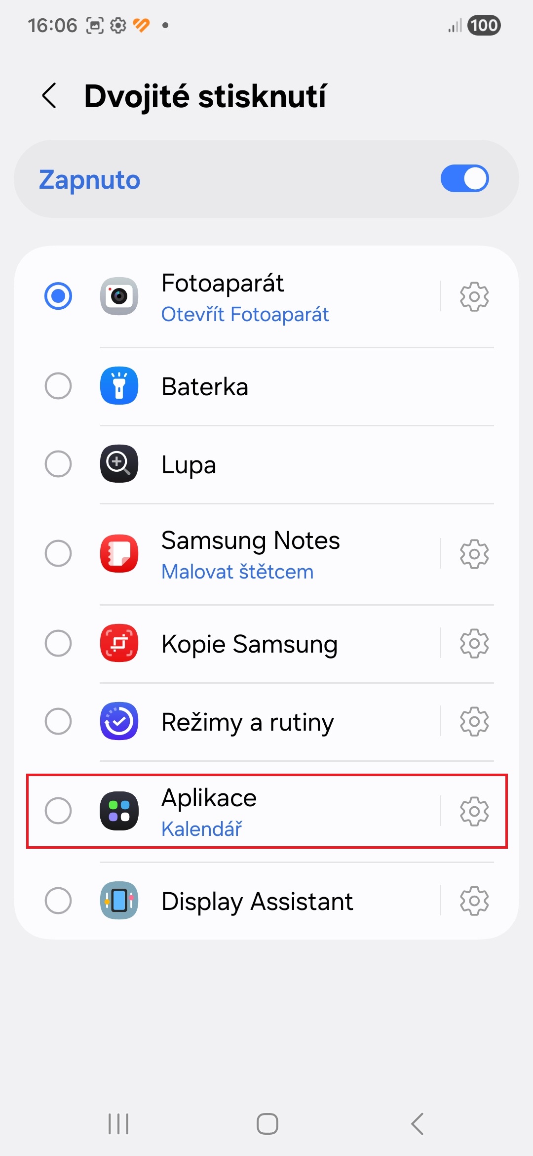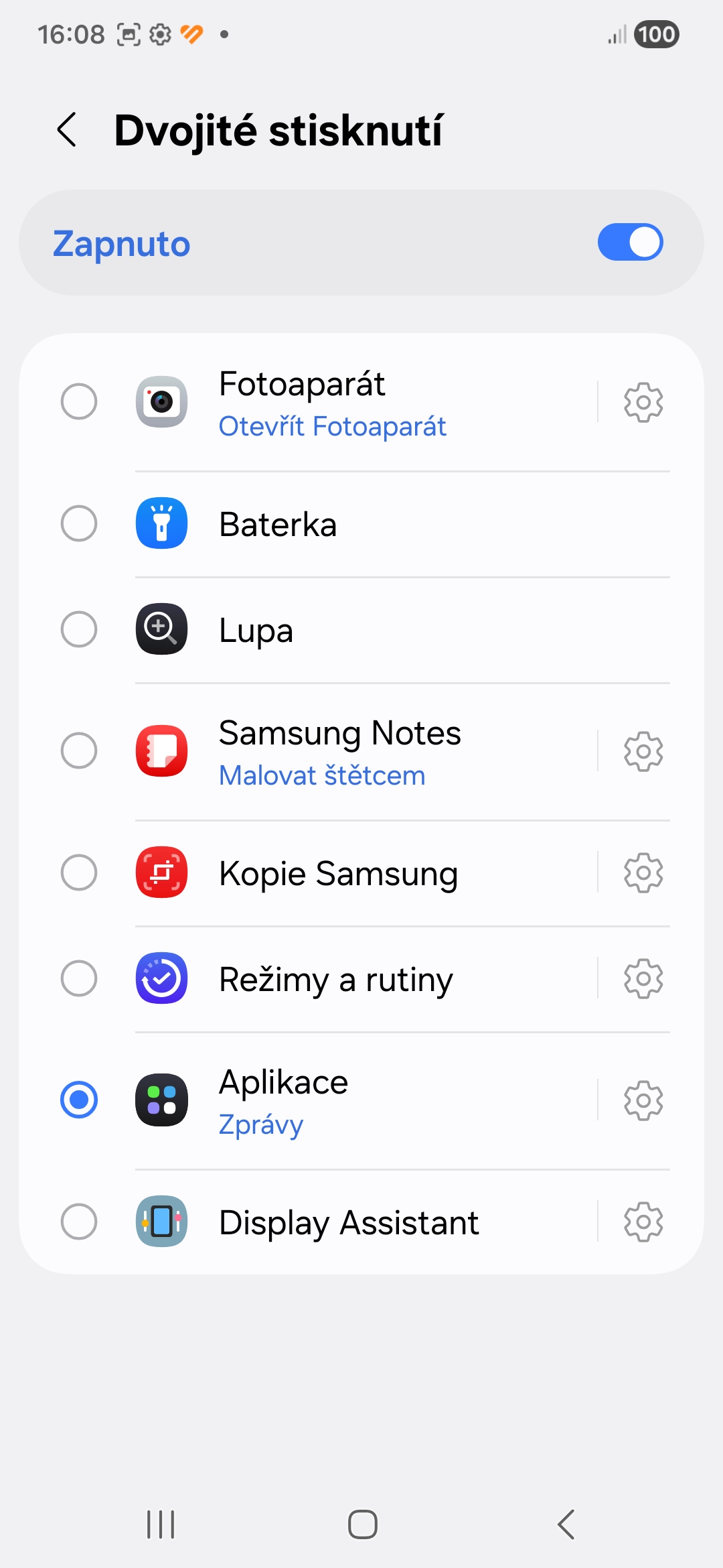 • Vyberte, jaká aplikace se má dvojitým stisknutím spustit.
