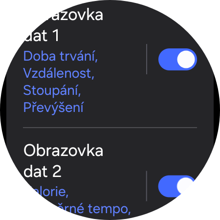V závislosti na aktivitě mohou být k dispozici tři nebo čtyři možnosti rozvržení, přičemž si můžete si vybrat až dvě obrazovky a během cvičení mezi nimi svajpovat. Nelze však vybrat více než dvě obrazovky cvičení.