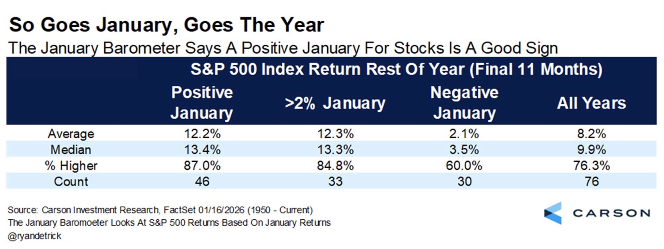 Zdroj: Carson Investment Research, FactSet 01/16/2026 (1950-2026)
