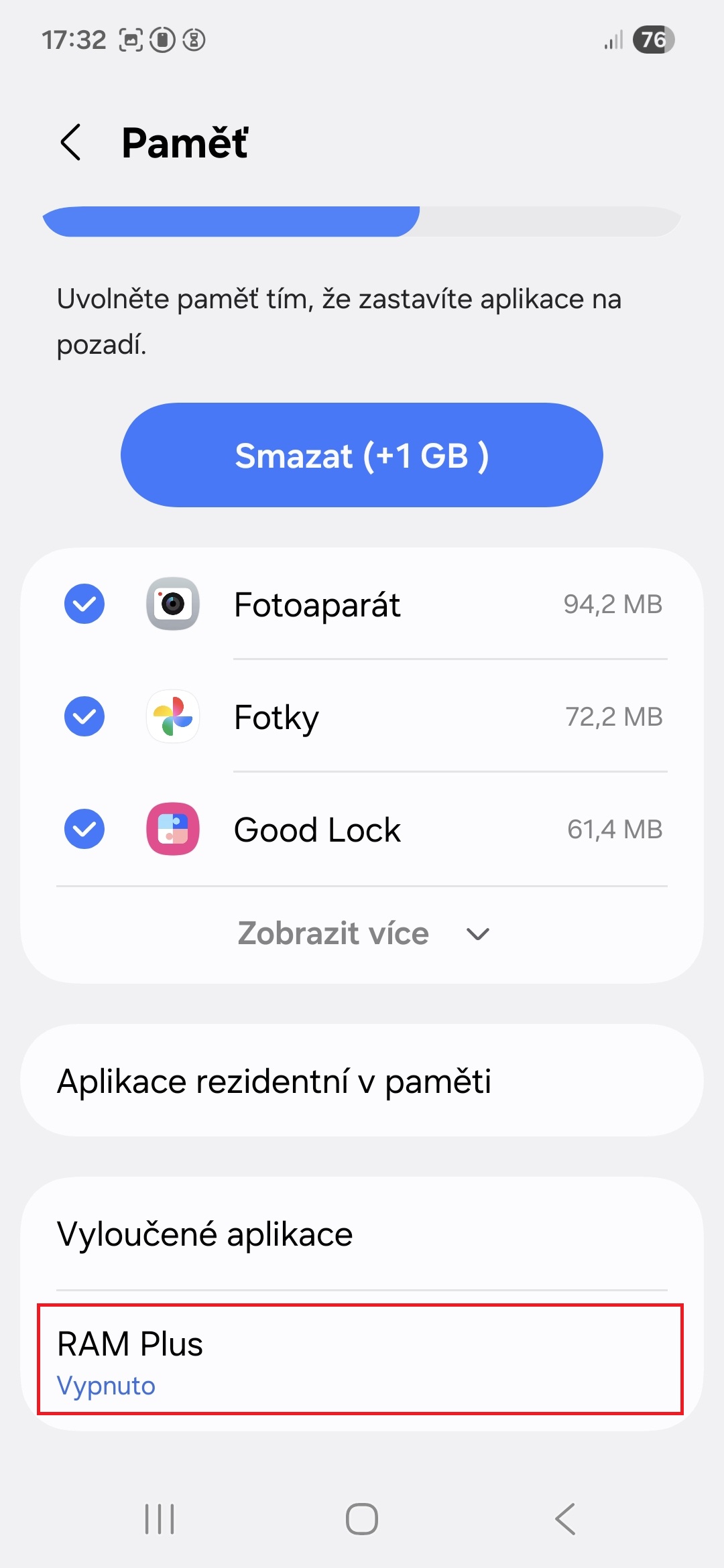 - Klepněte na položku RAM Plus.