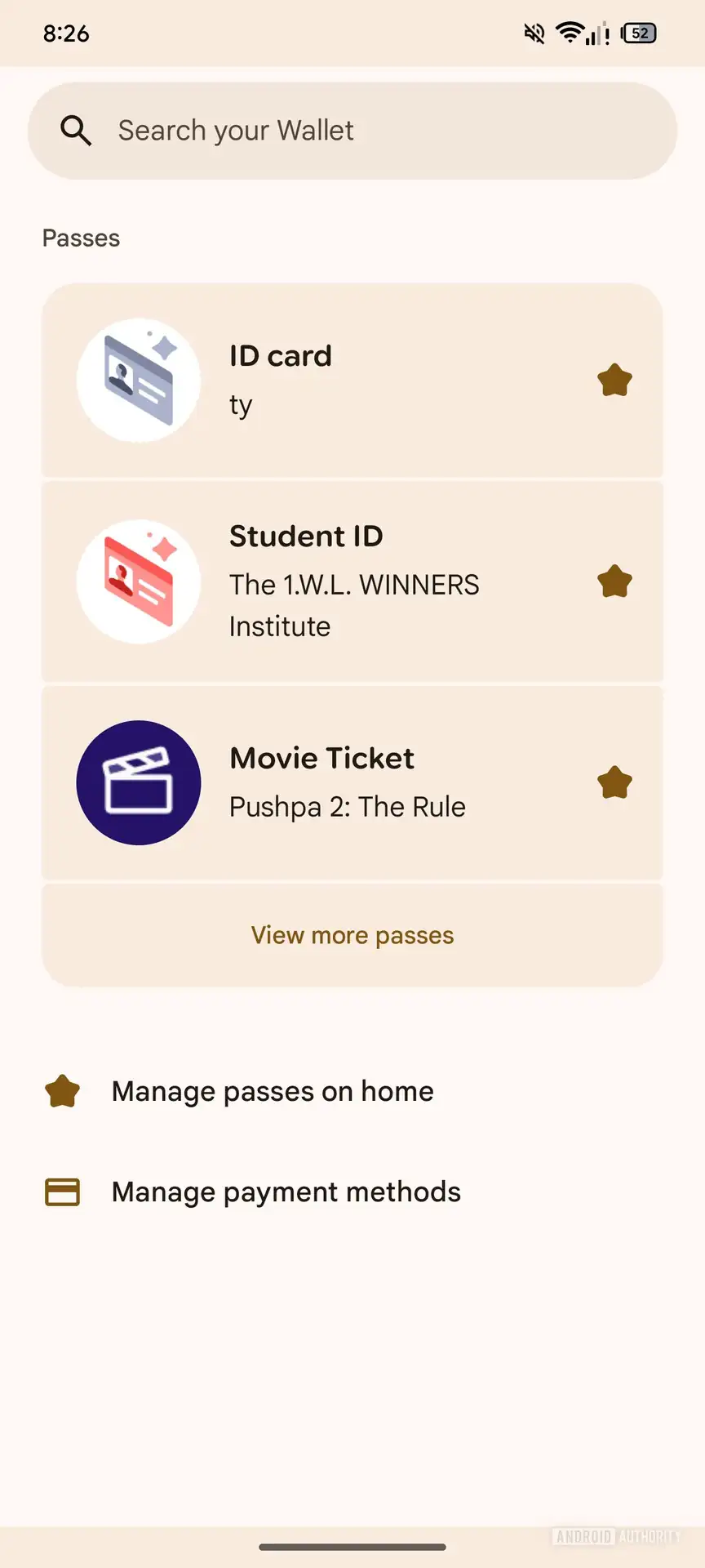 Nové tlačítko totiž podle zjištění portálu Android Authority povede na úvodní stránku s vyhledávacím polem a možnostmi pro správu platebních metod a průkazů připnutých na domovské obrazovce. Právě tady je budete moci seřadit podle svých potřeb nebo třeba podle abecedy nebo data posledního použití. Ale ty zbylé neuvidíte.