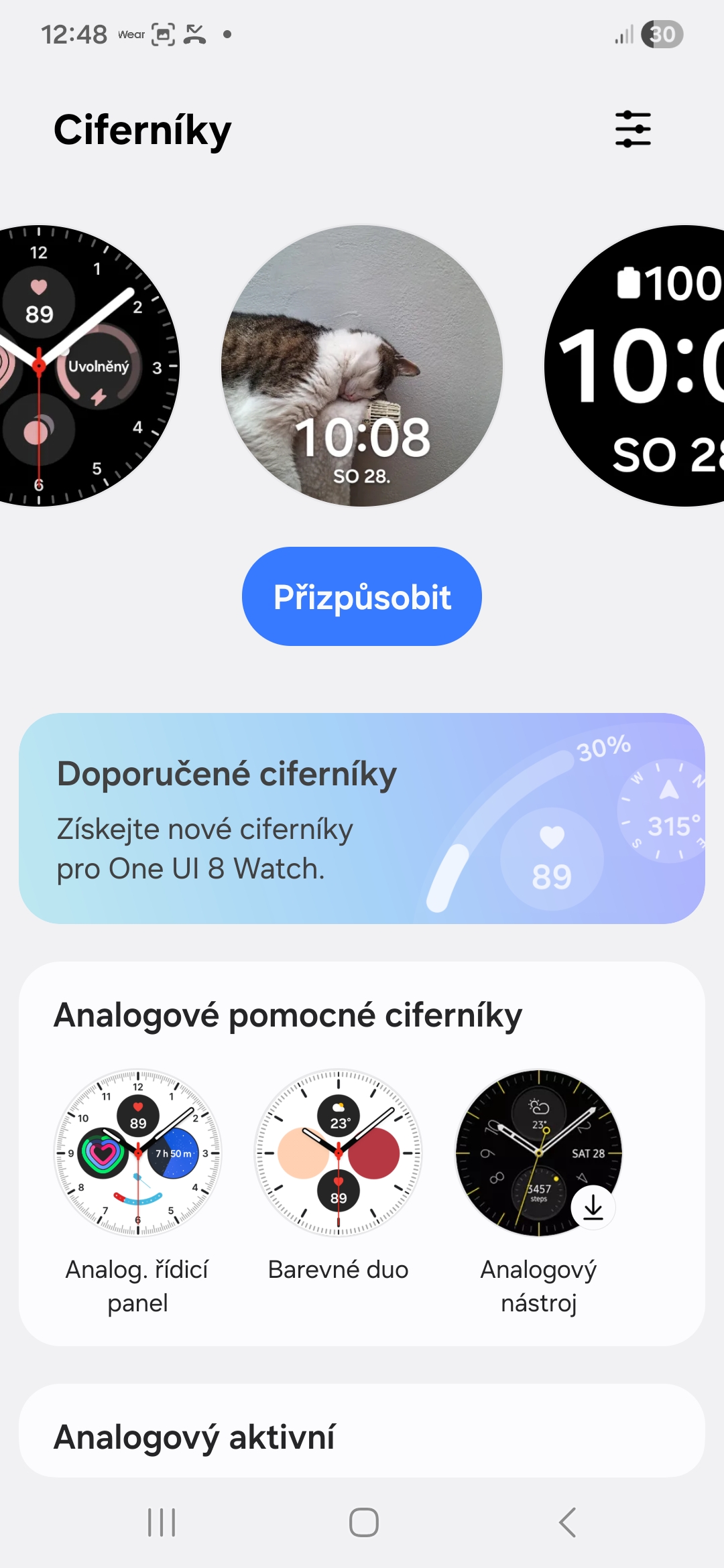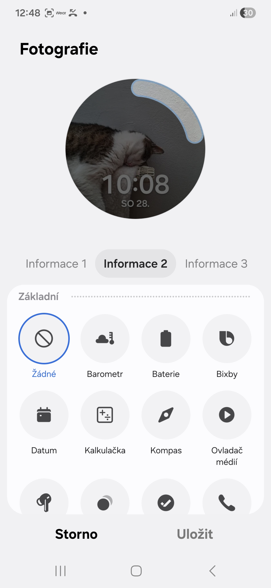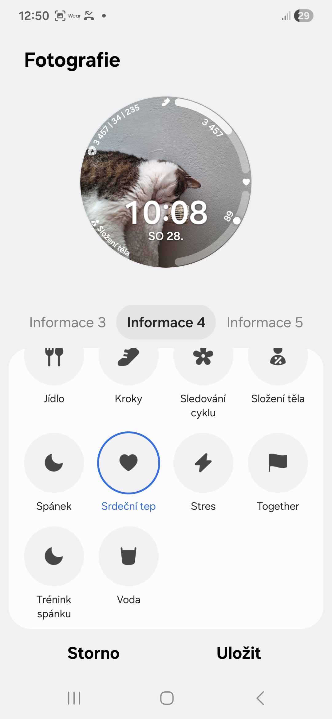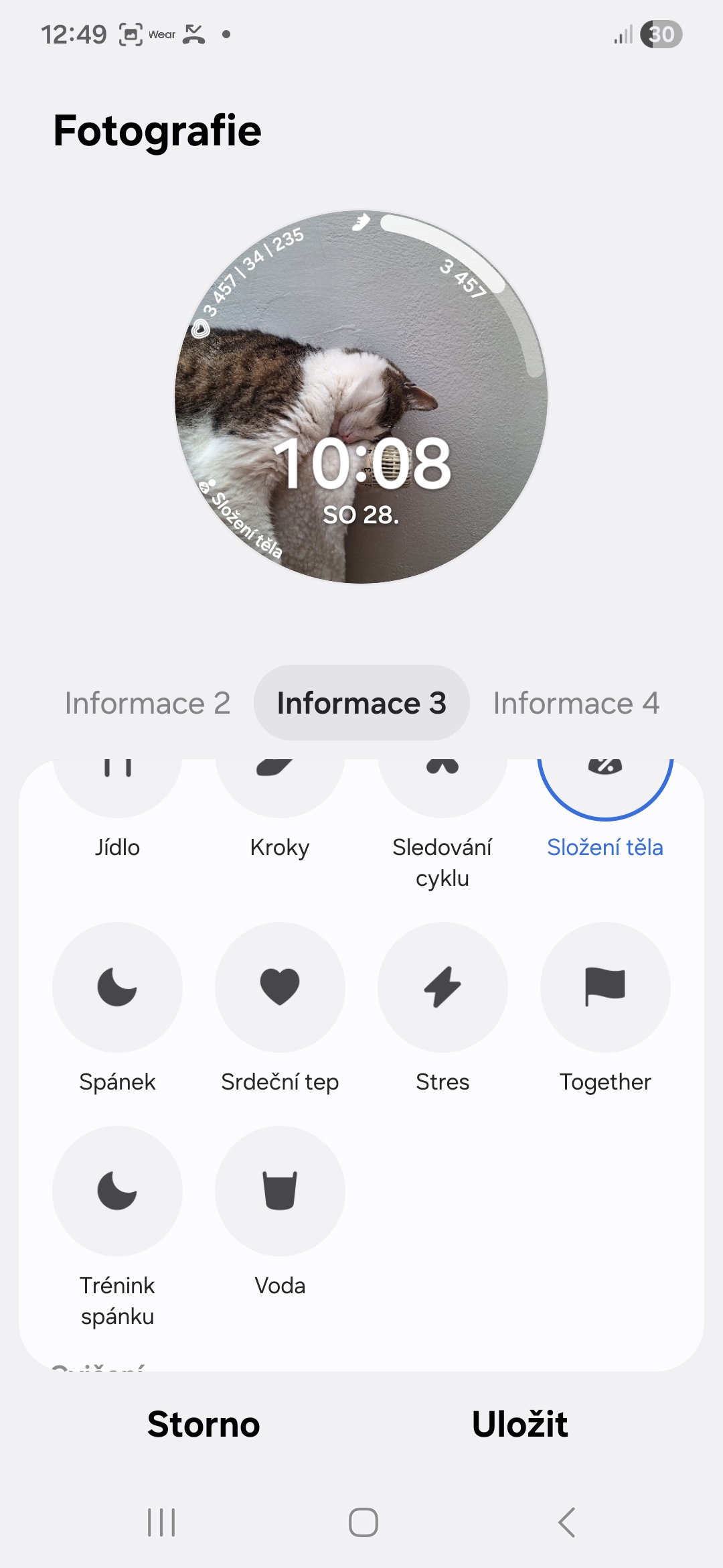 To, co chcete, aby komplikace ukazovaly, si můžete nastavit pomocí tlačítka Přizpůsobit, které se objeví po dlouhém stisknutí vybraného ciferníku. Mnohem pohodlnější je to však prostřednictvím aplikace Galaxy Wearable na telefonu.