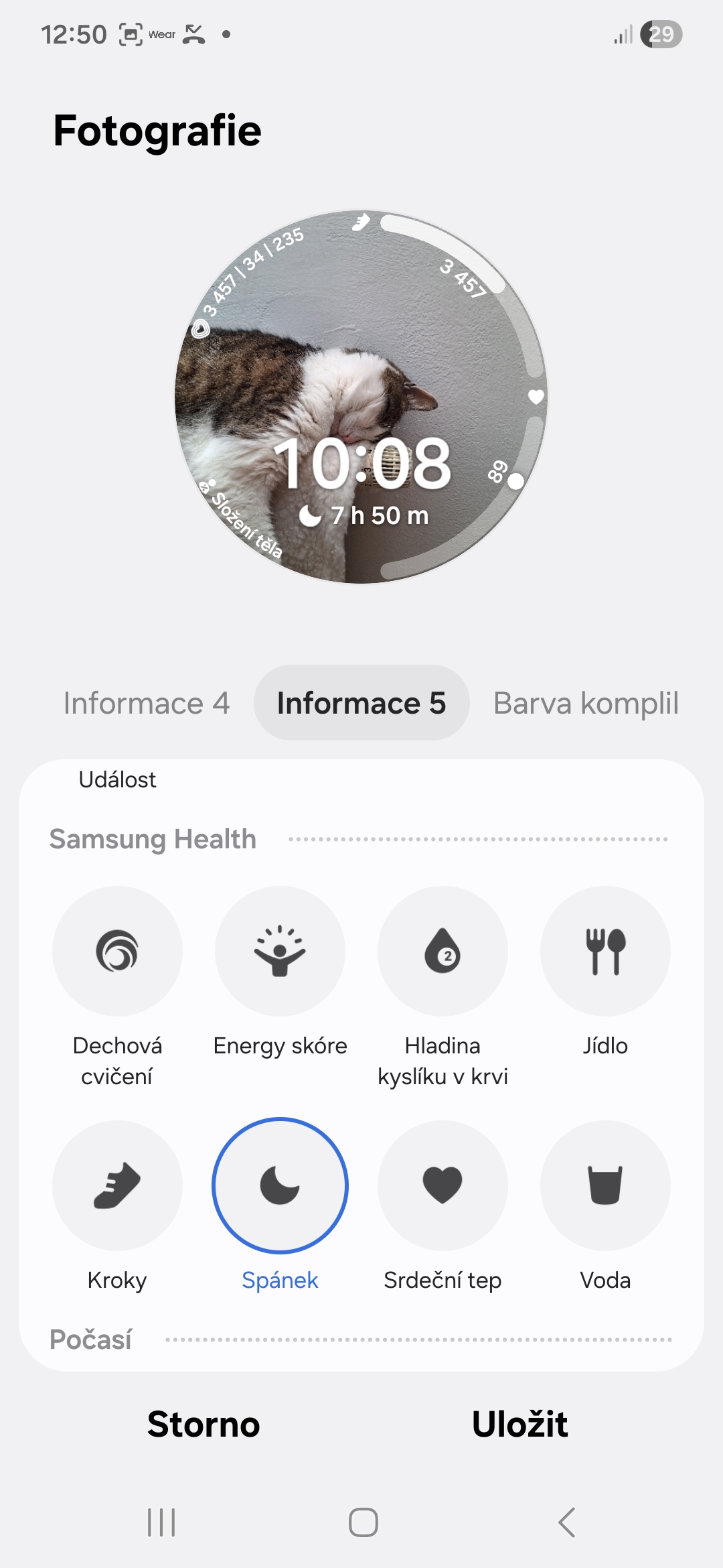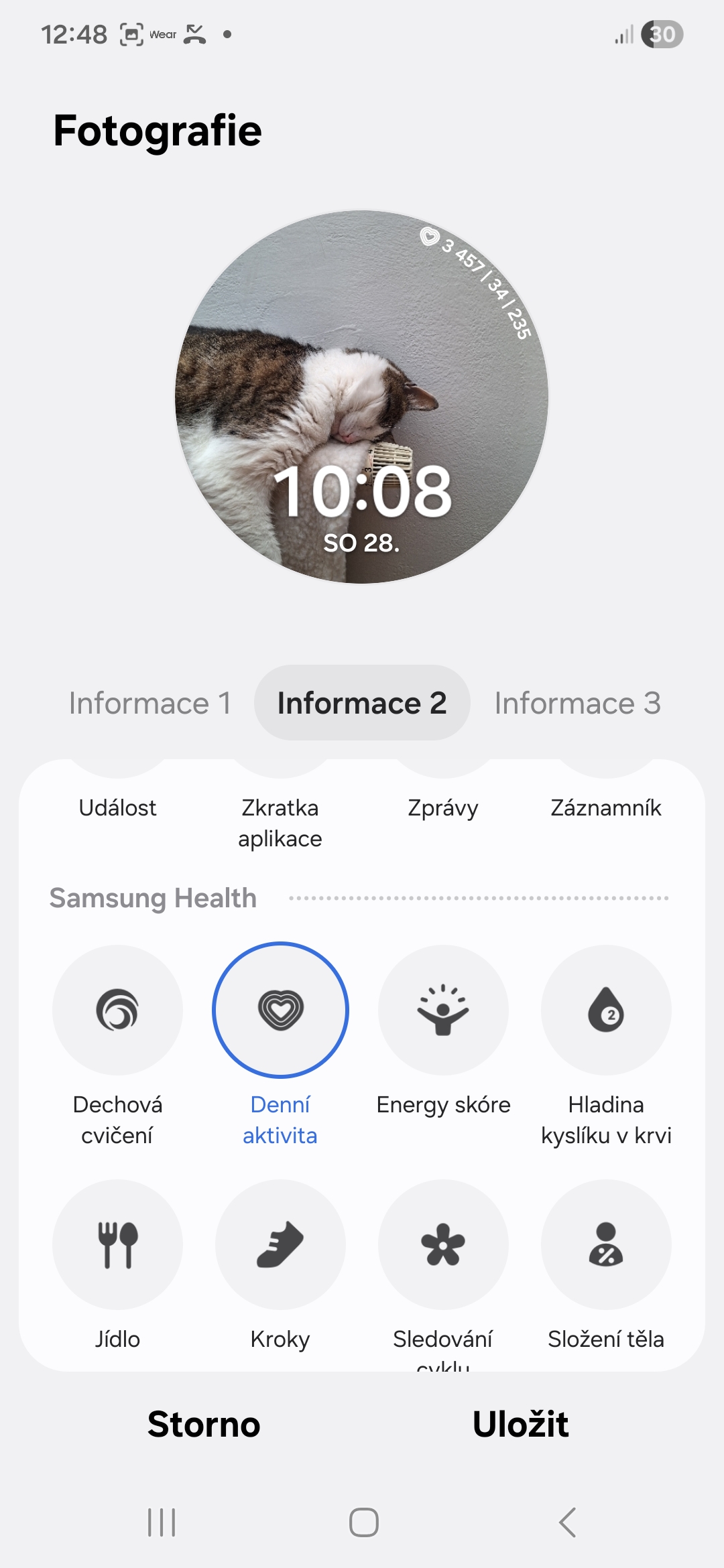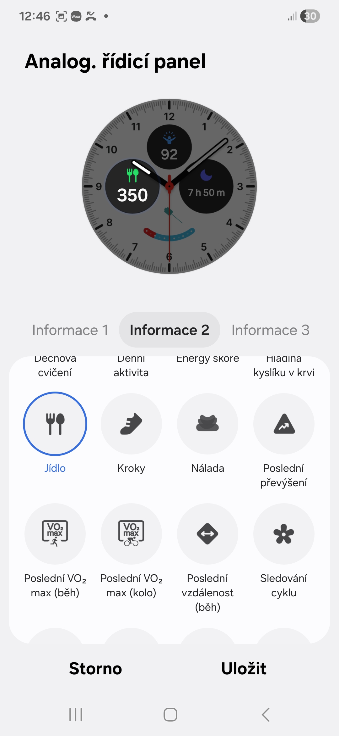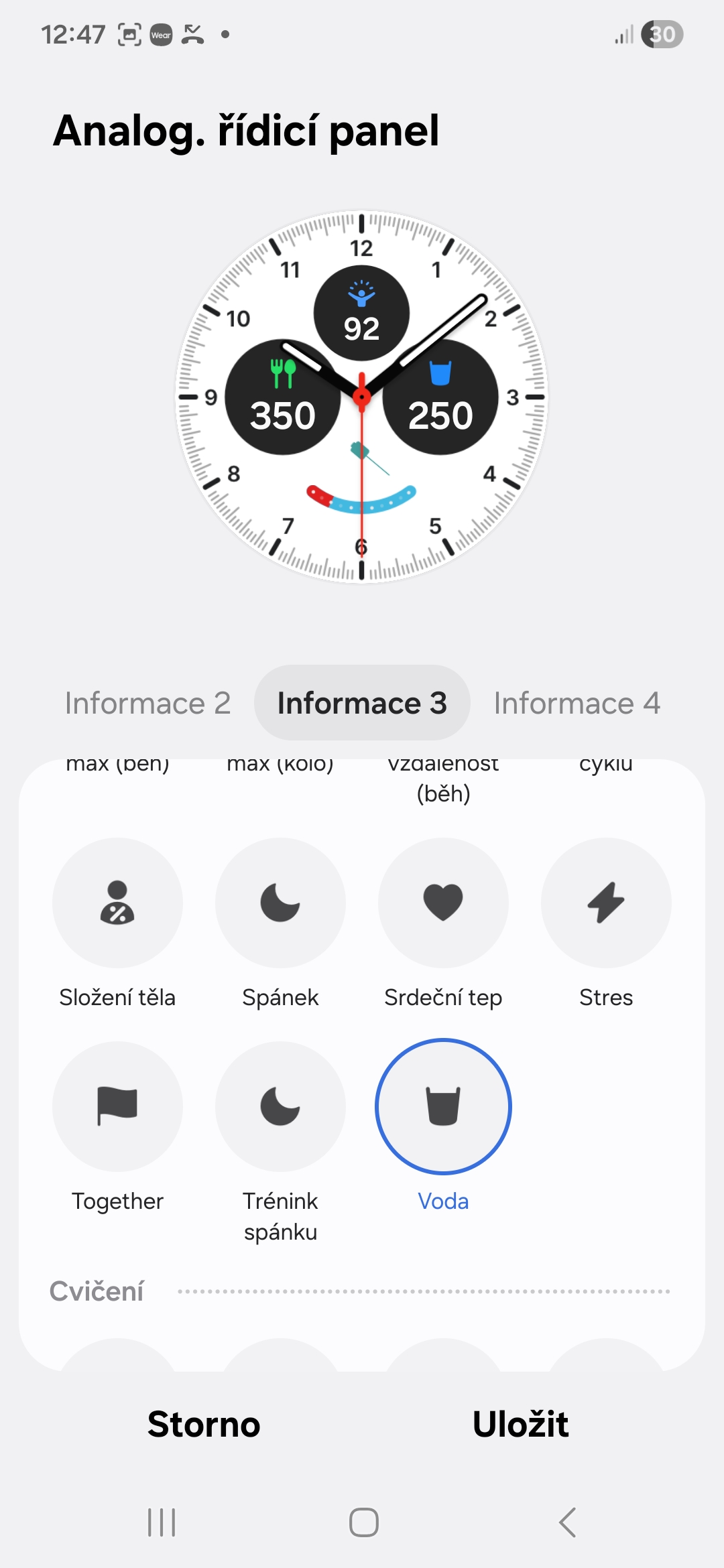 Každý digitální či analogový ciferník na vašich Galaxy Watch si můžete přizpůsobit tak, aby odpovídal vašemu životnímu stylu/zdraví. U každého si můžete přidat komplikace (Samsung jim říká informace) ukazující to, co je pro vás z hlediska vašeho životního stylu či zdraví důležité. V jedné může být například vaše denní aktivita, ve druhé kroky, ve třetí příjem kalorií, ve čtvrté skóre energie, v páté spánek apod. Záleží na tom, kolik komplikací daný ciferník nabízí (obvykle je to mezi dvěma až pěti).