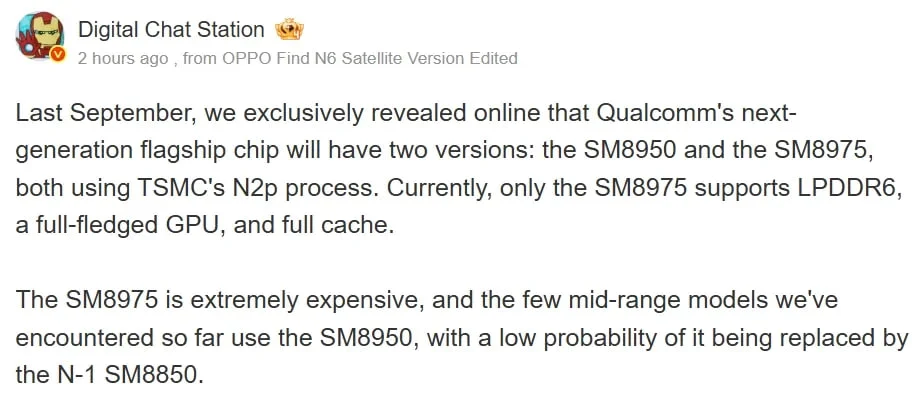 Už unikly informace o tom, že Qualcomm vyvíjí novou řadu mobilních procesorů. Na rozdíl od minulého roku by ale měl připravit rovnou dva pokročilé čipy – Snapdragon 8 Elite Gen 6 a Snapdragon 8 Elite Gen 6 Pro. Oba by podle zjištění čínského leakera s přezdívkou DigitalChatStation měly být vyráběny 2nm technologií, čímž budou silně konkurovat čipu Exynos 2700 od Samsungu.