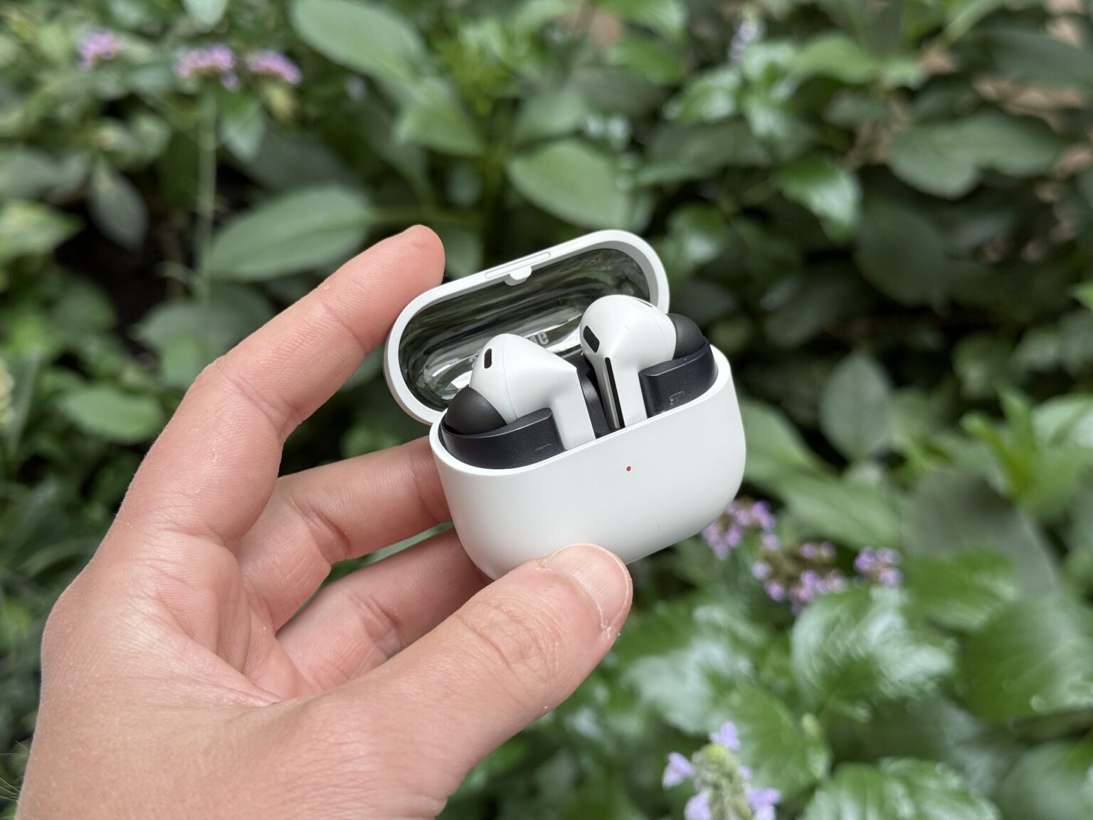 Jednou z nejvýraznějších změn je bezesporu nabíjecí pouzdro s průhledným víčkem. To se tvarem vlastně vrací do doby před Buds3, ale zachovává si prvek, se kterým nemusíte krabičku otevírat abyste věděli, že jsou sluchátka na svém místě. Obsahuje USB-C konektor a tlačítko, které bude sloužit k lokalizování připojeného telefonu.