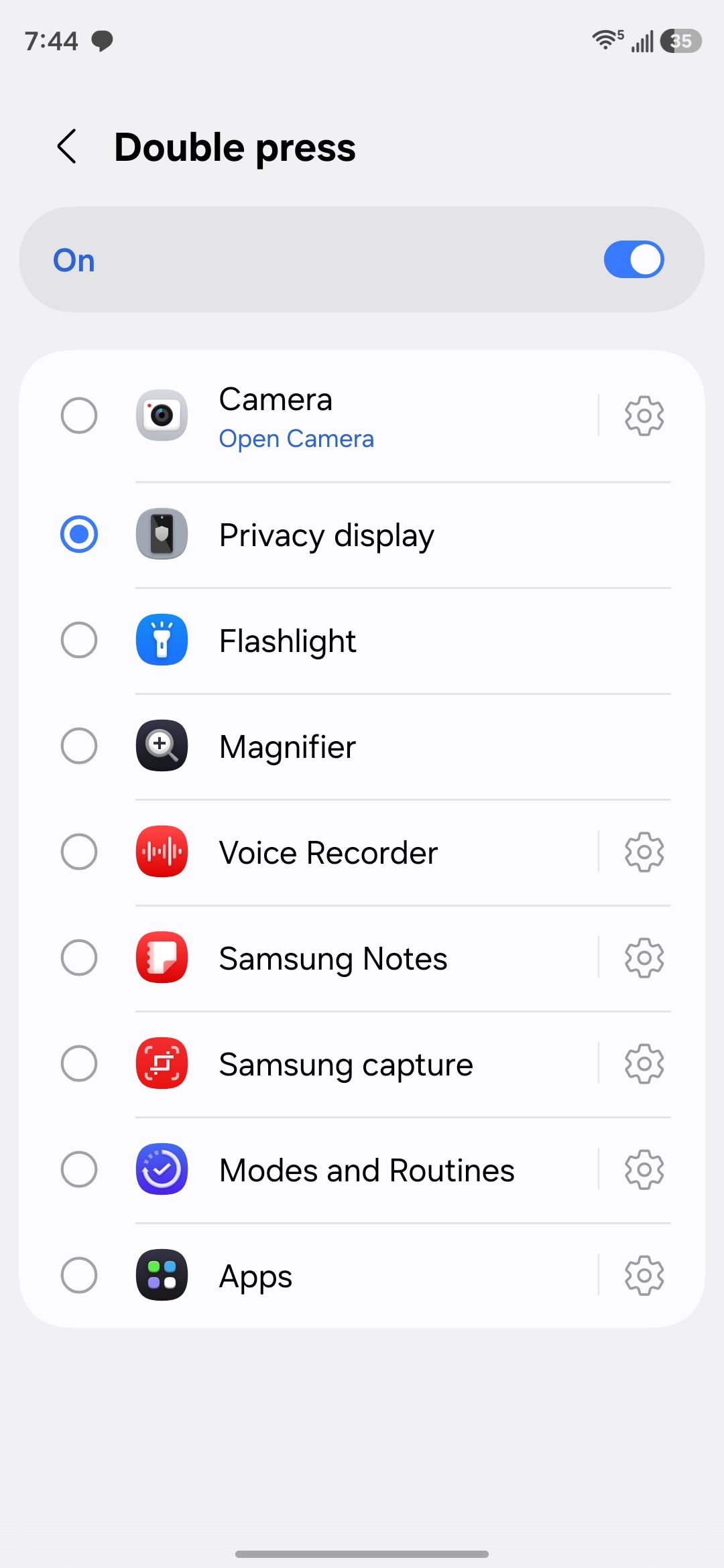 • U možnosti Dvojité stisknutí vyberte funkci Privacy Display.