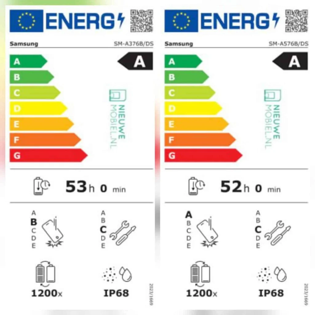 Energetické štítky Galaxy A57 a Galaxy A37
