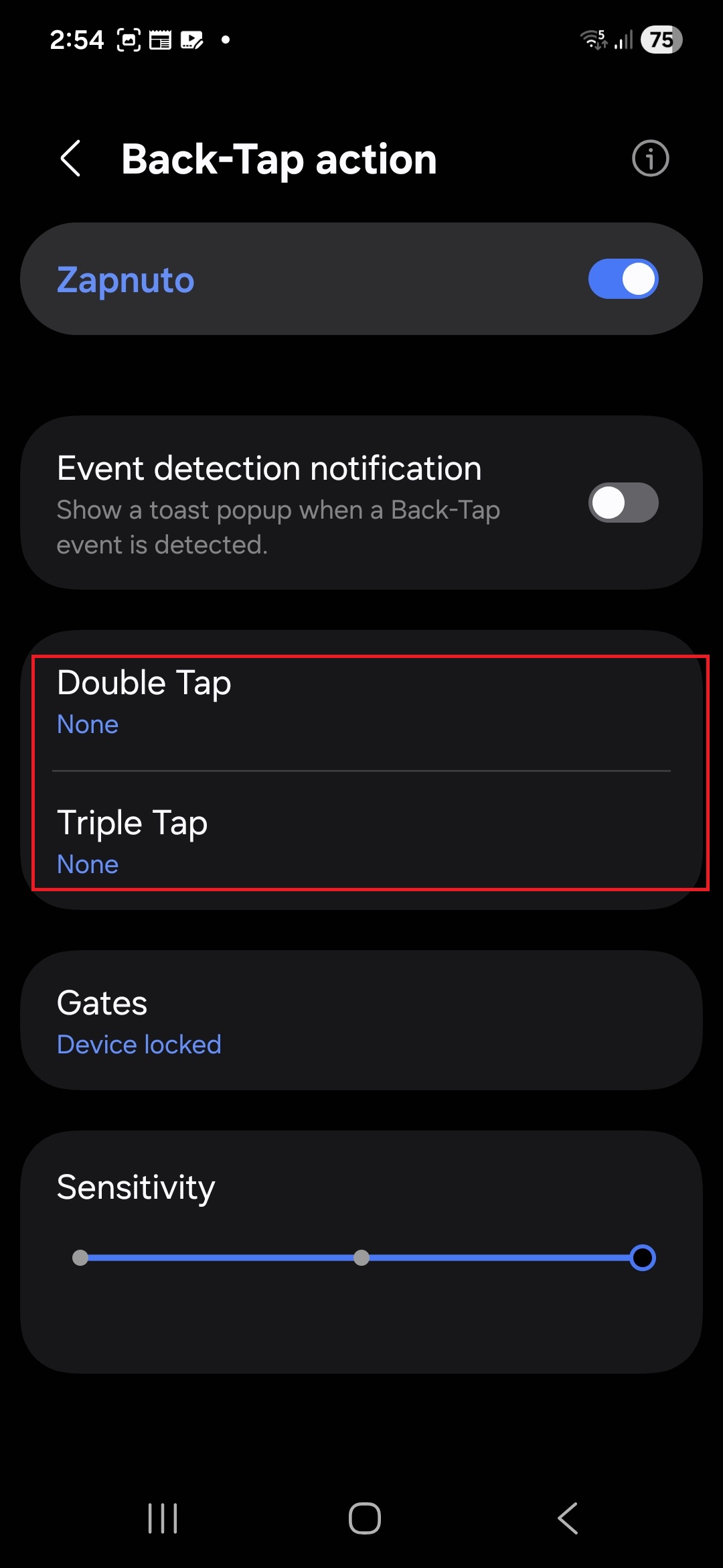 - Pokud si chcete nastavit akci na gesto dvojitého klepnutí na záda, klepněte na „Double Tap“, pokud na gesto trojitého klepnutí, vyberte „Triple Tap“.