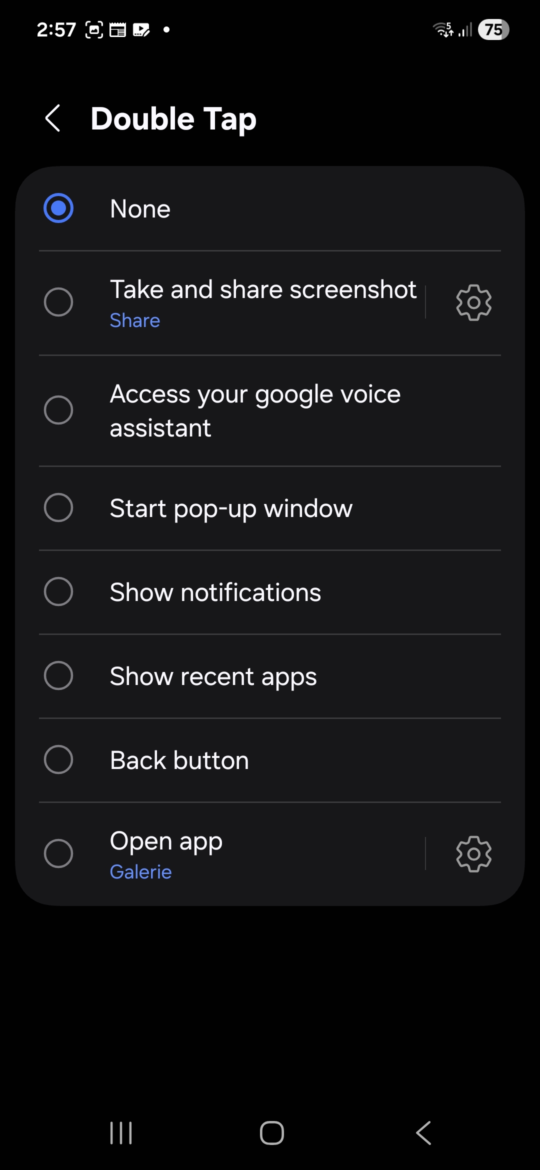 Mezi Good Lock moduly patří i ten s názvem RegiStar, který mi s trochou nadsázky změnil život. Zpřístupňuje totiž nesmírně užitečná gesta, konkrétně dvojité a trojité poklepání na zadní stranu telefonu, na která si můžete nastavit různé akce (například pořízení screenshotu, vyvolání hlasového asistenta, spuštění notifikační lišty atd.) nebo otevření kterékoli aplikace, kterou máte na telefonu nainstalovanou. U některých se nabízí více možností – např. u Galerie si můžete zvolit, jestli chcete otevřít přímo aplikaci, nebo přejít rovnou na videa, hledání apod.
