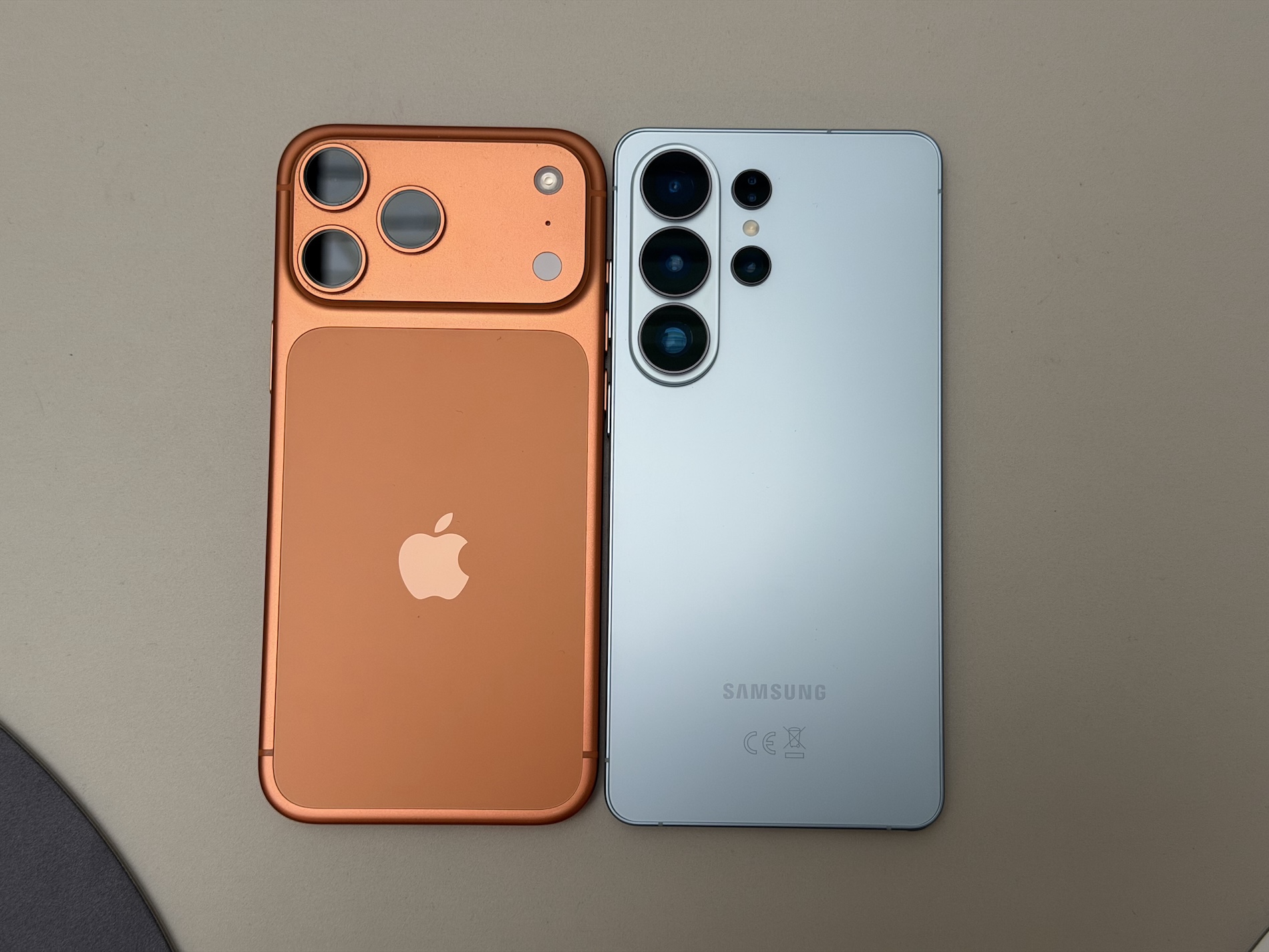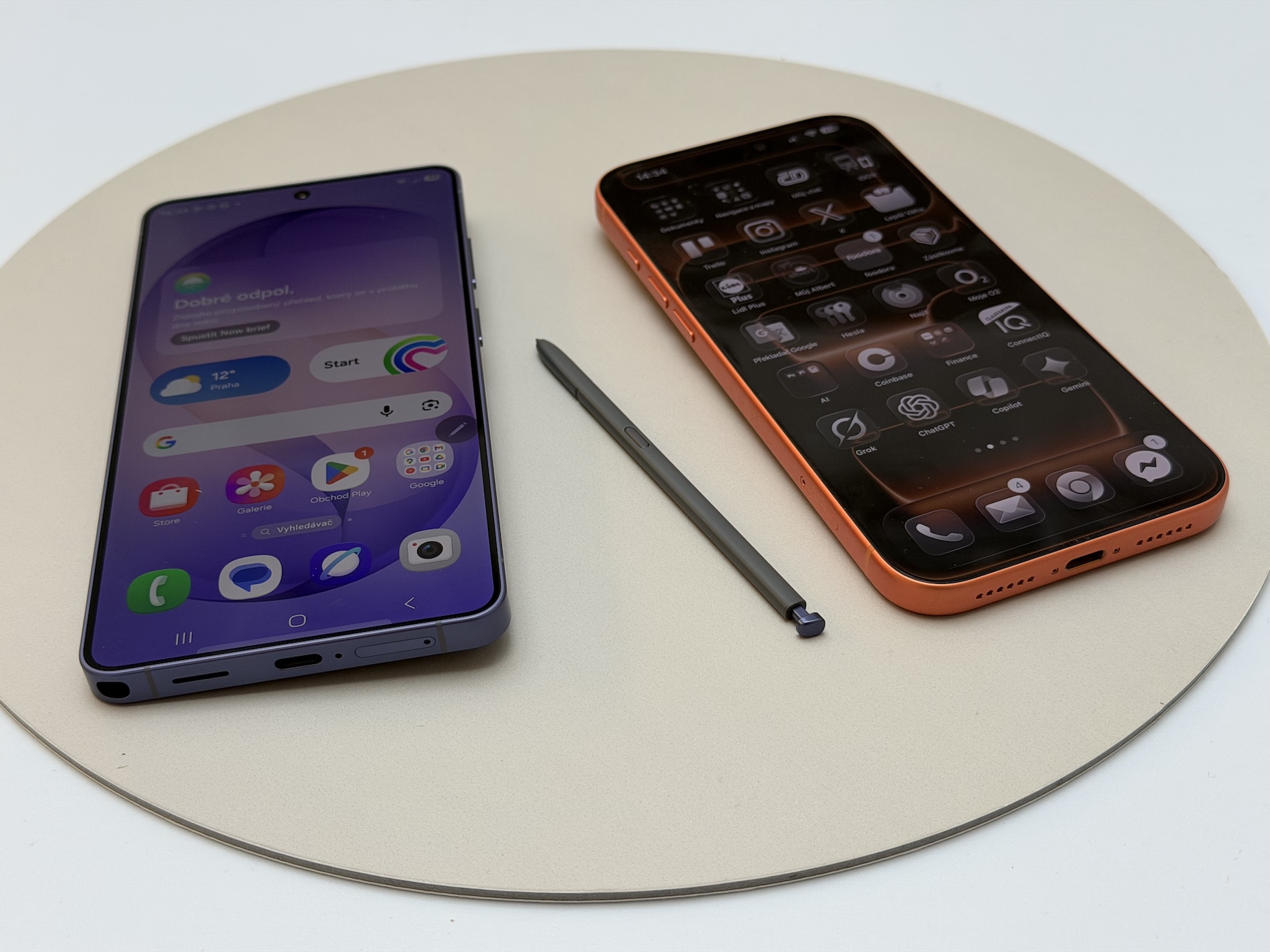 Galaxy S26 Ultra je s tloušťkou pouhých 7,9 mm nejtenčím modelem řady Ultra v historii Samsungu. Ve srovnání s iPhonem 17 Pro Max, který má v pase 8,75 mm, působí díky úspoře 0,3 mm oproti svému předchůdci výrazně elegantněji a iPhone na druhou stranu tak trochu jako cihla (a to i díky své oranžové barvě).