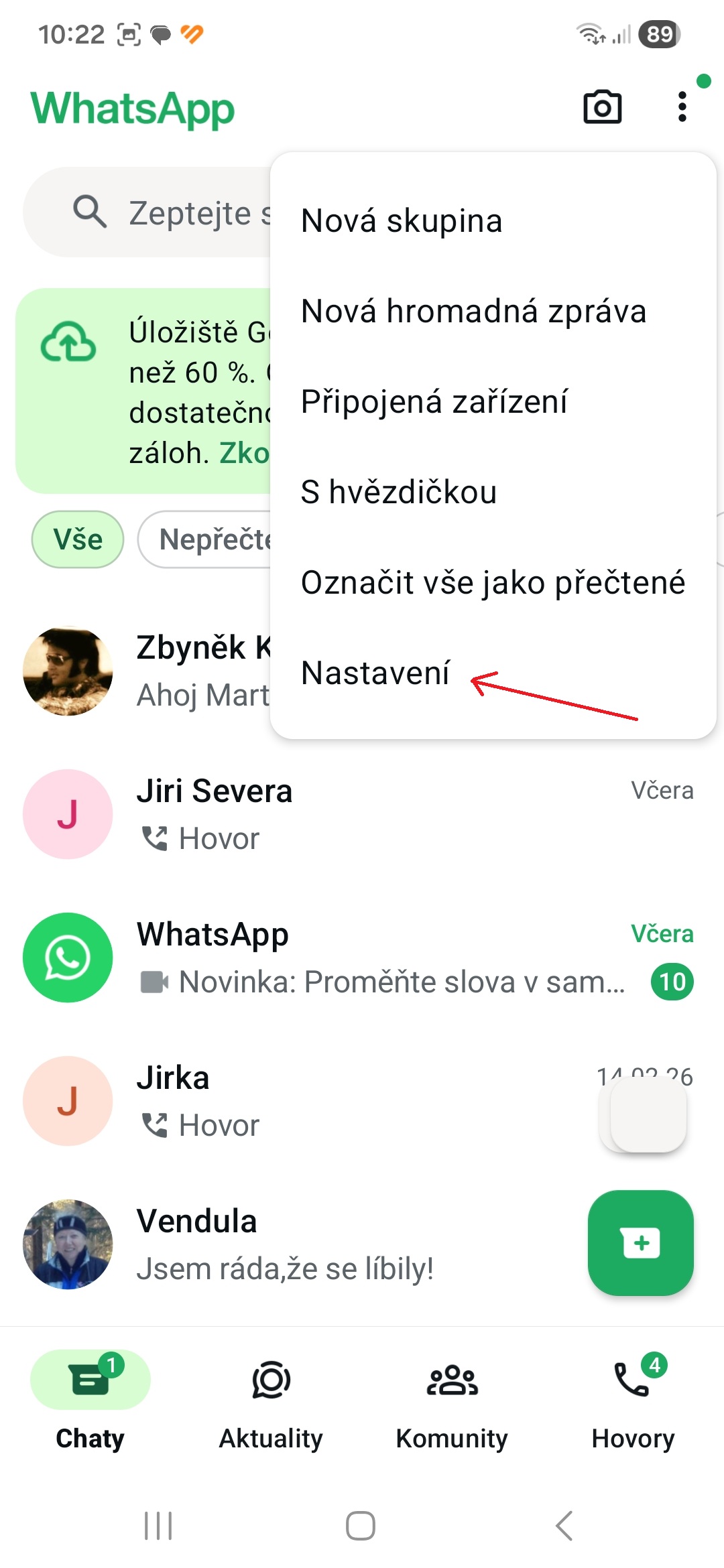 - Vyberte možnost Nastavení.