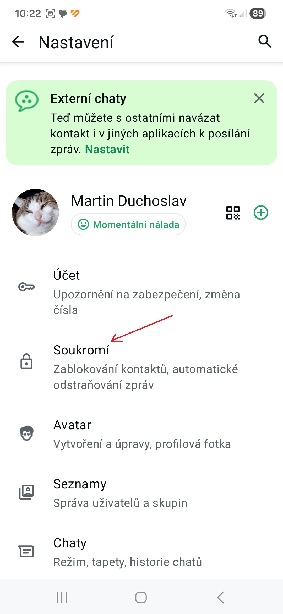 - Klepněte na položku Soukromí.