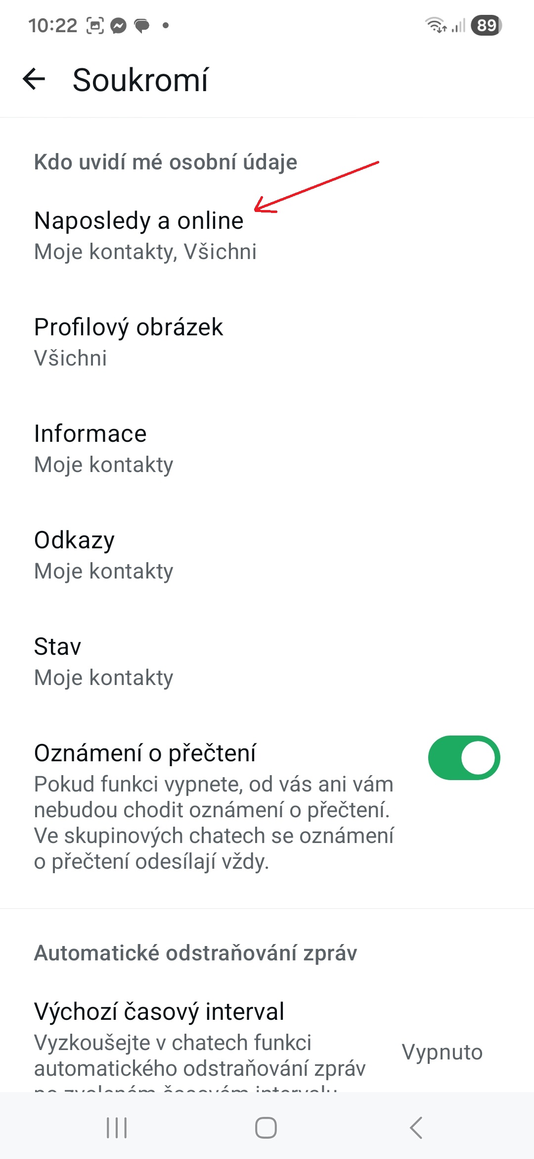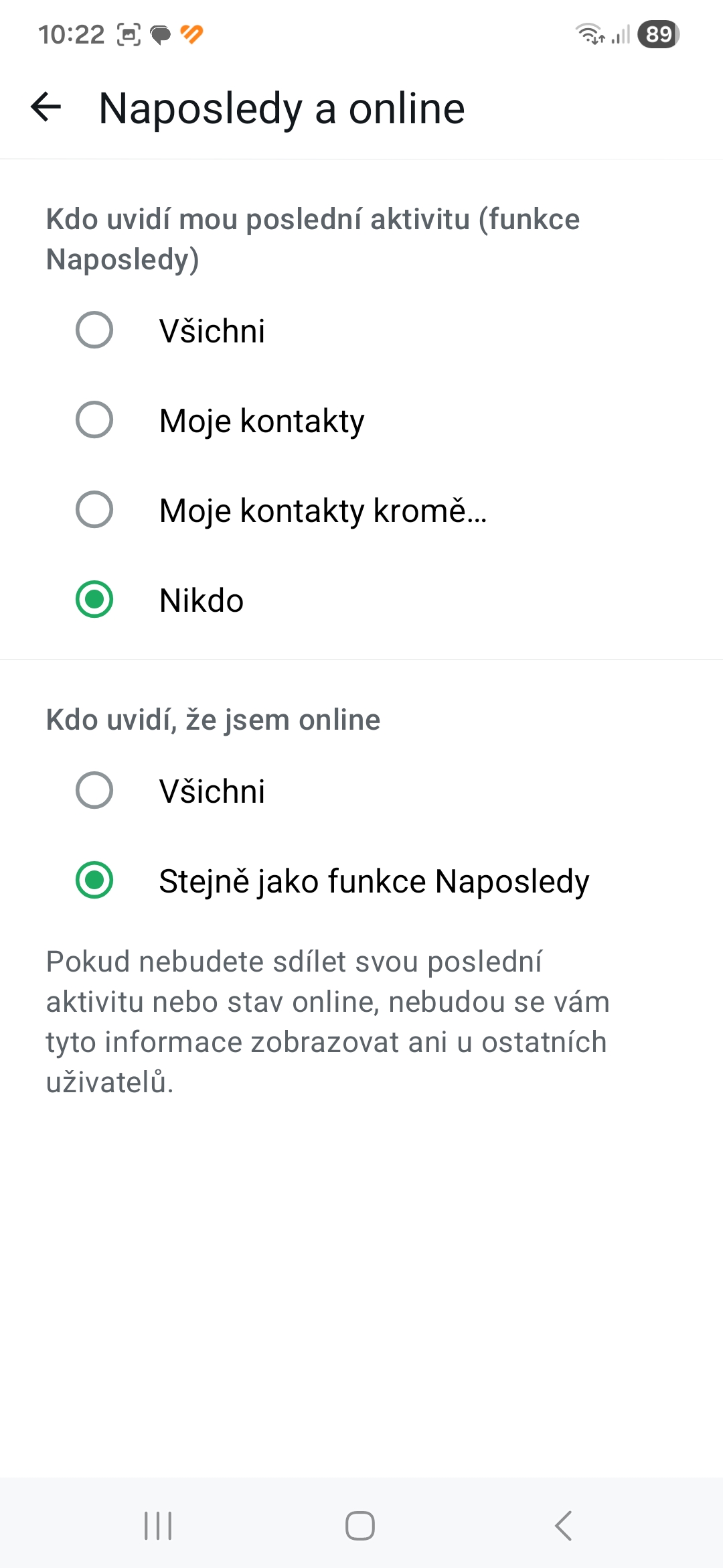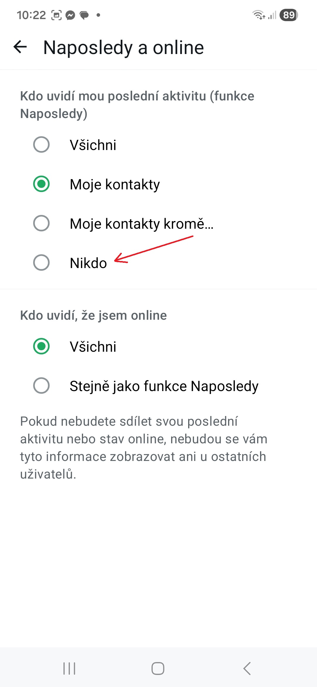 - V sekci Kdo uvidí mou poslední aktivitu nastavte možnost Nikdo.