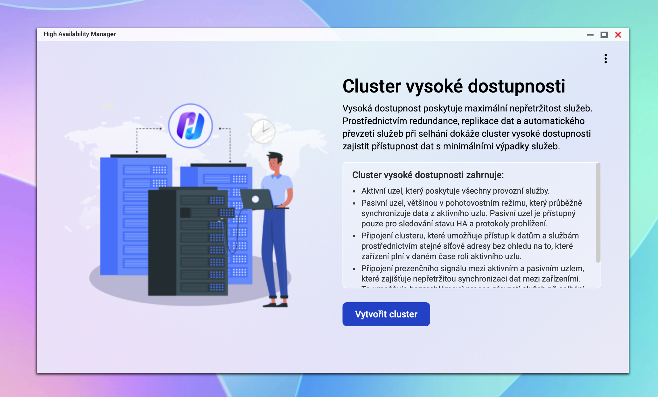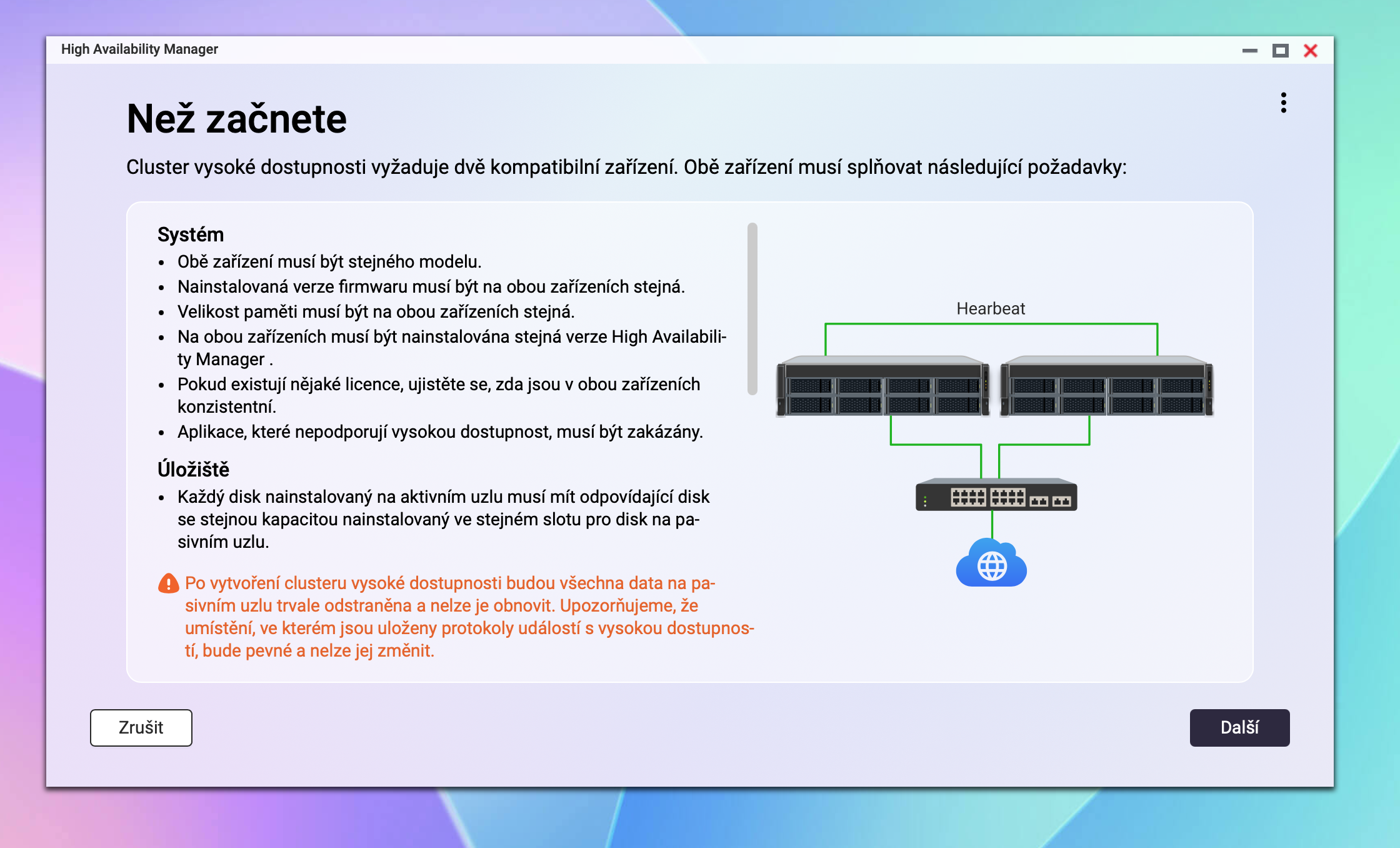 Největší změna celé řady h6.0 je High Availability Manager QNAP tím posouvá QuTS hero blíž k „serverové“ realitě, kde je klíčová vysoká dostupnost. V praxi si ze dvou NAS postavíte active-passive HA cluster: aktivní uzel obsluhuje data a služby, pasivní uzel průběžně synchronizuje jeho stav a je připraven převzít roli. Jakmile dojde k problému (třeba hardwarová závada, výpadek nebo plánovaný restart), systém umí automaticky přepnout provoz na pasivní uzel, takže výpadek je výrazně kratší nebo pro uživatele v síti téměř neznatelný. Kromě toho přináší QuTS hero 6 také řadu úprav grafického uživatelského rozhraní (GUI), které zvyšují přehlednost systému a zpříjemňují každodenní práci se správou NAS.