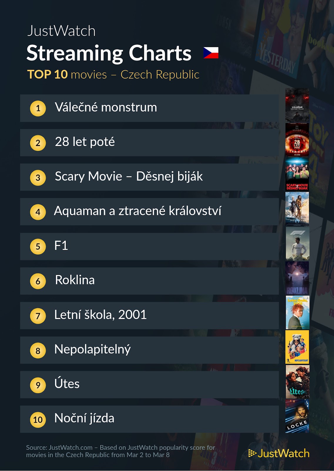 Naposledy, kdy měl Netflix v TOP 10 filmů svůj počin na prvním místě, bylo v období od 19. do 25. ledna. To bodoval se snímkem Rána. Nyní je tu ale jiný hit, a to Válečné monstrum, které si hned za první víkend podmanilo diváky VOD. Druhé místo patřilo 28 let poté, které je k dispozici v HBO Max. Trojkou bylo Scary Movie, tedy snímek z roku 2000, který těží z aktuálního hypu kolem svého pokračování. K vidění je na Netflixu a SkyShowtime.