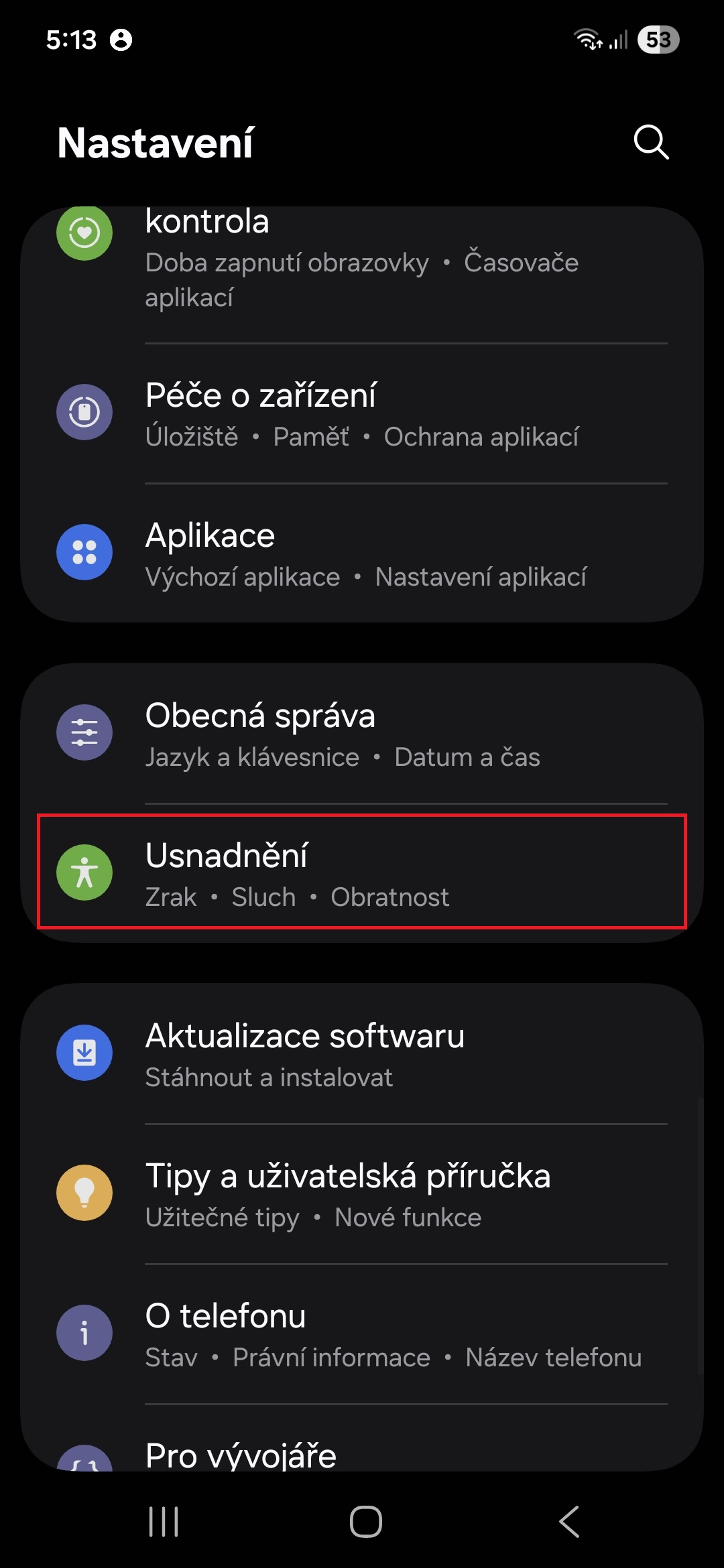 • Vyberte nabídku Usnadnění.