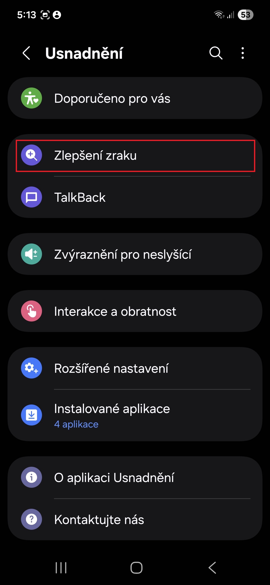 • Klepněte na možnost Zlepšení zraku.