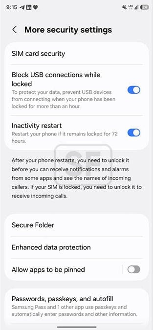 Tato funkce se konkrétně jmenuje Inactivity restart. Jde o automatizační funkci, jejímž cílem je zvýšit ochranu vašeho soukromí. Pokud je povolena (v Nastavení → Zabezpečení a soukromí → Další nastavení zabezpečení), telefon se automaticky restartuje, pokud zůstane uzamčen po dobu 72 hodin. Po restartu telefonu jej budete muset odemknout, abyste mohli přijímat oznámení a budíky z některých aplikací a zobrazovat jména volajících. Pokud je vaše SIM karta uzamčena, musíte ji nejdříve odemknout, abyste mohli přijímat hovory.