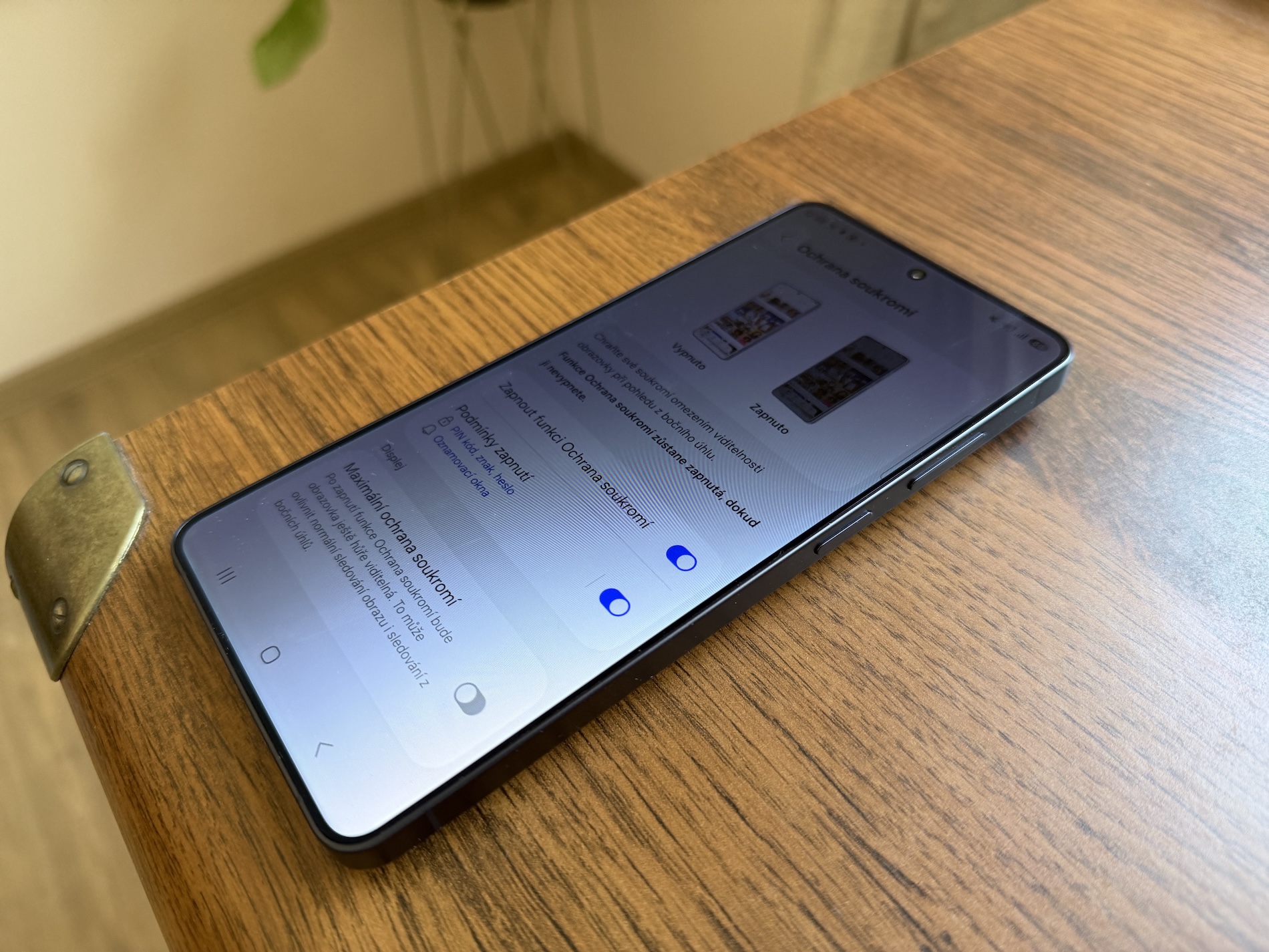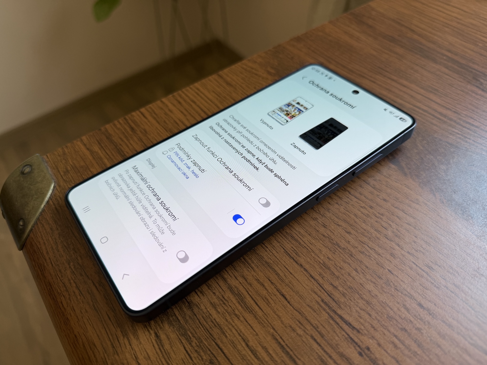 Důležitá je však nabídka Maximální ochrana soukromí. Pravě ta dělá to největší kouzlo, že ještě více skryje obsah displeje při jeho pozorování z úhlů. Ten tak hodně zešedne a je už skutečně obtížné ho jakkoli číst.