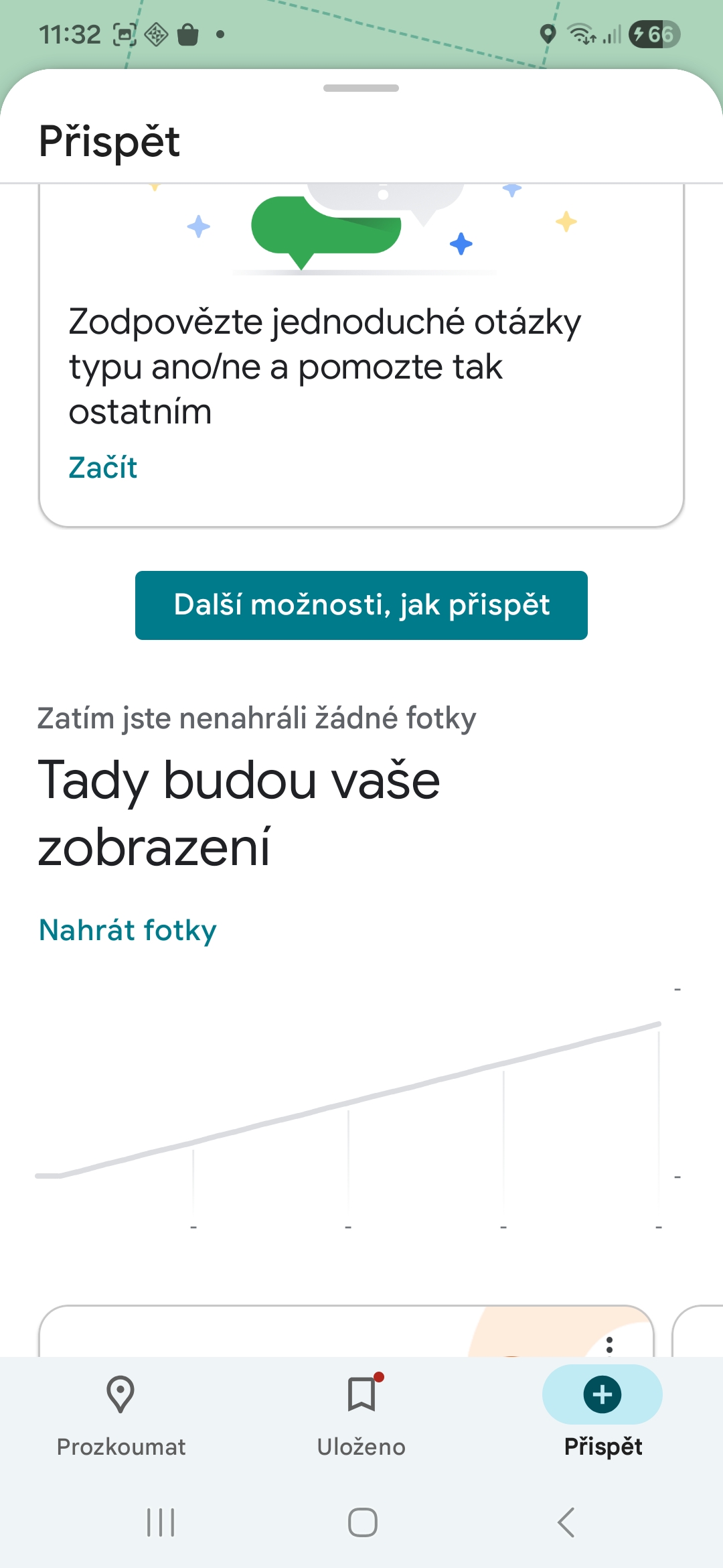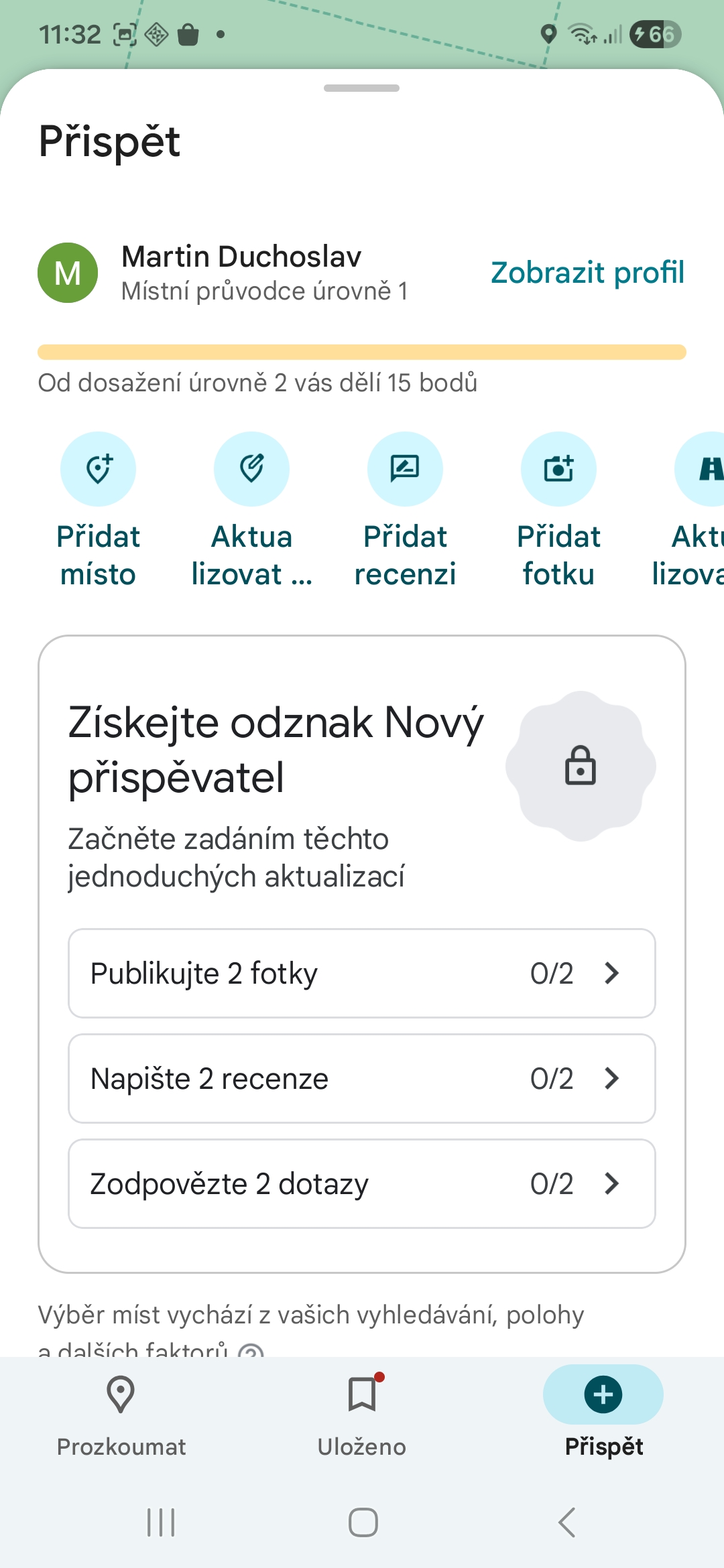- Příspěvky: V aplikaci najdete kartu Přispět, kde najdete výzvy, jako je hodnocení navštívených míst, psaní recenzí nebo přidání fotek/videí.