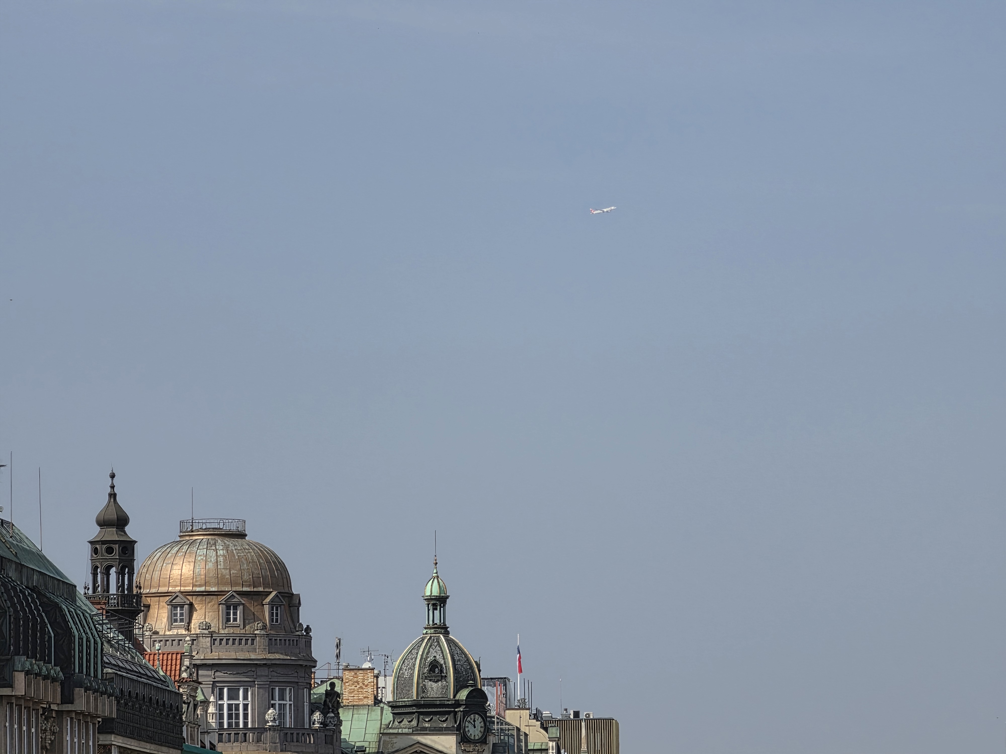 Zatímco na širokoúhlý záběr je třeba hledat ideální pohled, aby nebyl nudný a neukazoval až příliš mnoho nezajímavého, s postupným zoomováním se začnou dít věci. Fascinovalo mě, jak telefon i při vysokém přiblížení drží detaily – najednou vidíte struktury, které jsou pro běžného turistu s očima u země neviditelné. Dokonce se mi podařilo „ulovit“ i letadlo vysoko na obloze, které bylo na fotce stále jasně definováno, žádná rozmazaná šmouha.