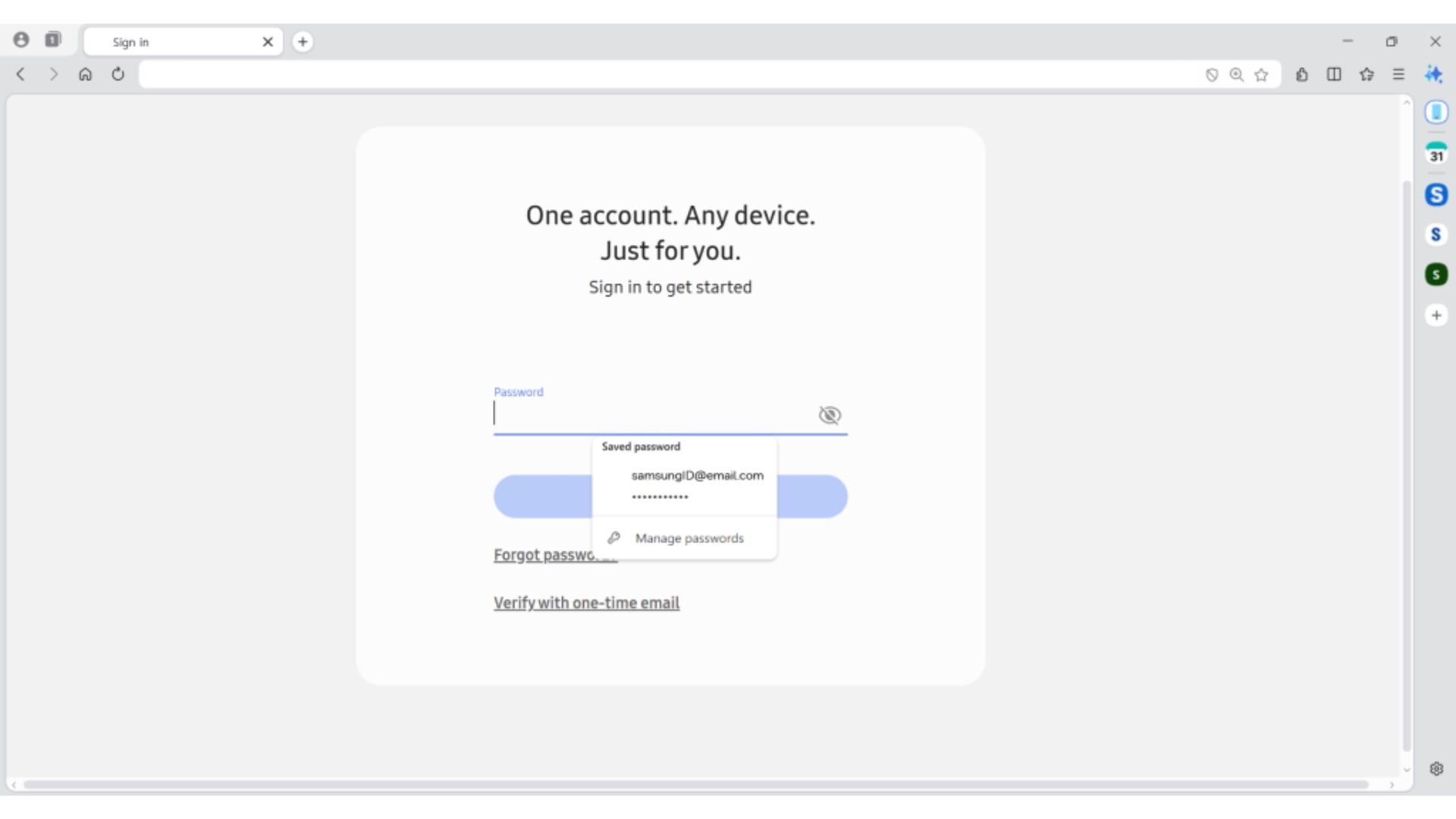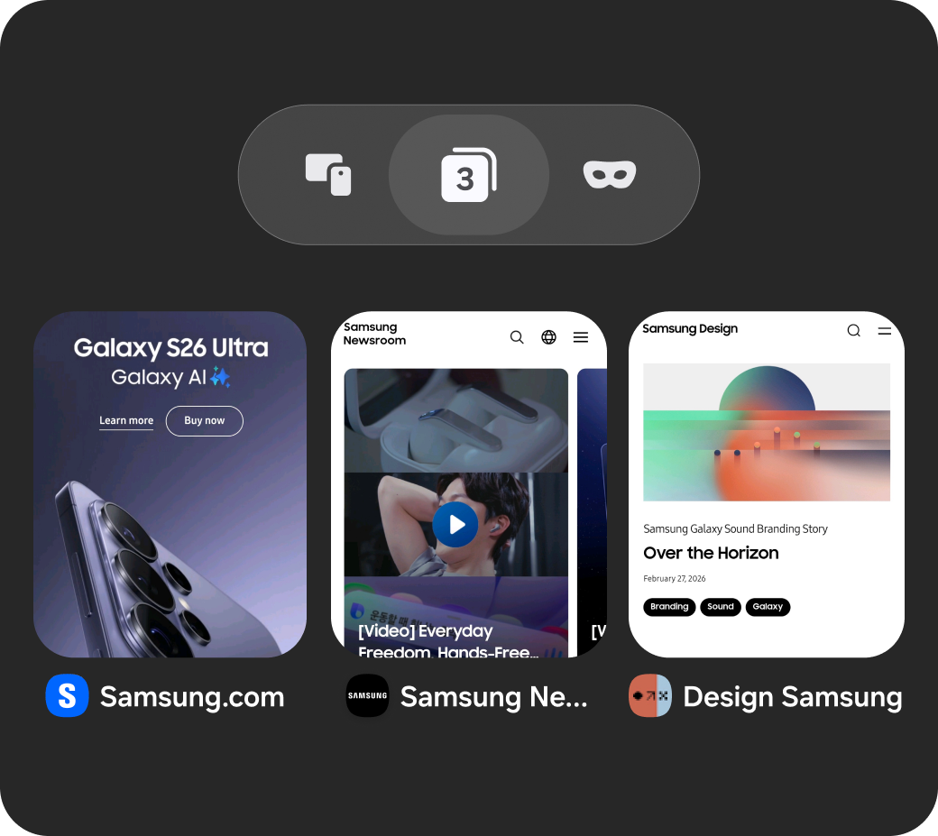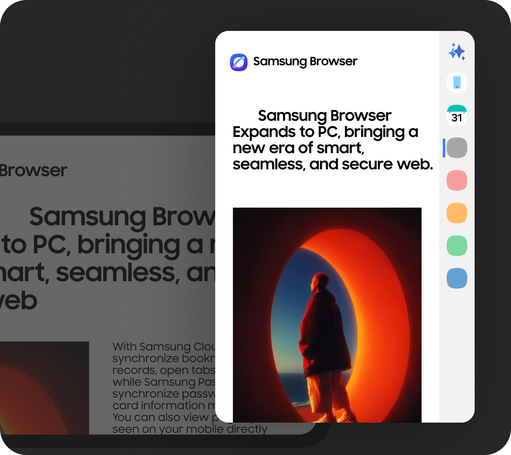 Samsung Browser nabízí plynulou kontinuitu napříč zařízeními mezi počítači, chytrými telefony a tablety. Pokud například otevřete webovou stránku na telefonu a poté přejdete na počítač, můžete v prohlížení pokračovat od místa, kde jste skončili. Musíte být ovšem na obou zařízeních přihlášeni ke stejnému účtu Samsung. Prohlížeč také podporuje synchronizaci záložek a historie prohlížení a umožňuje vytvářet poznámky díky integraci s aplikací Samsung Notes.