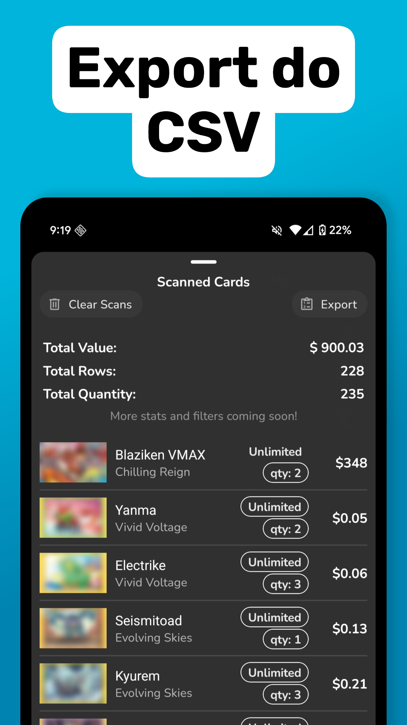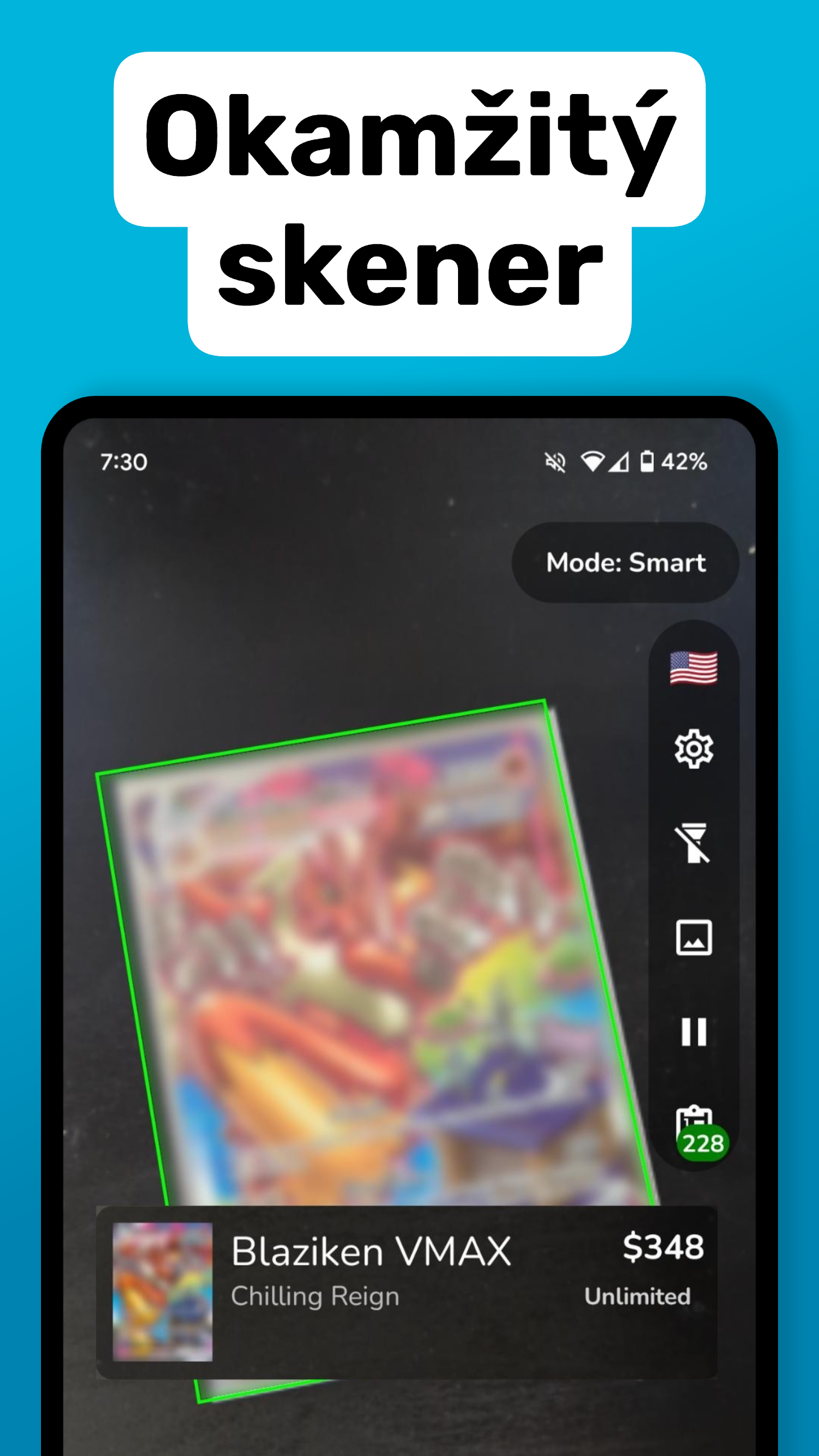 - Proč ji mít: Umožňuje hromadné skenování. Pokud máte před sebou hromádku desítek karet, stačí je postupně dávat pod čočku vašeho Samsungu a aplikace je sama sází do seznamu i s aktuální cenou.