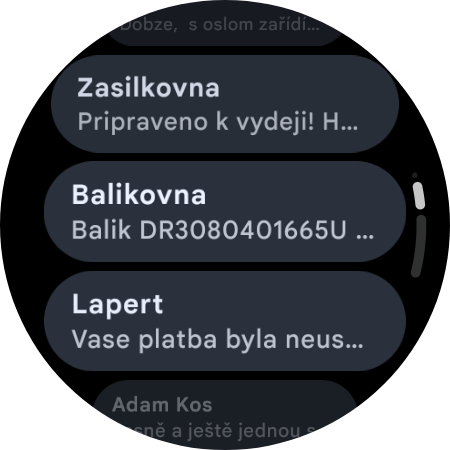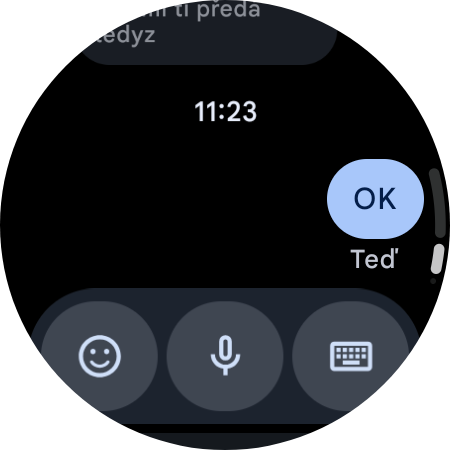 Ze svých Galaxy Watch4 Classic také posílám zprávy, konkrétně prostřednictvím aplikace Zprávy Google. Proč vytahovat telefon, když to můžete udělat ze zápěstí? Psaní na malé obrazovce samozřejmě není tak pohodlné jako na telefonu, ale po chvíli vám přejde do krve (alespoň mně skutečně přešlo), k čemuž pomáhá i prediktivní psaní.