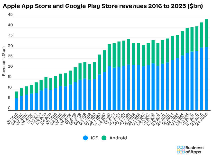 I díky tomu je Apple výrazně ziskovější než jeho konkurenti. Podle jiné statistiky aktuálně drží téměř 70 % příjmů z aplikací a většinu zisků v odvětví. Uživatelé iPhonů, iPadů, Apple Watch a dalších zařízení jsou totiž typicky věrní svému ekosystému a nebojí se připlácet si za nadstandardní služby, což u Androidu není příliš zvykem.