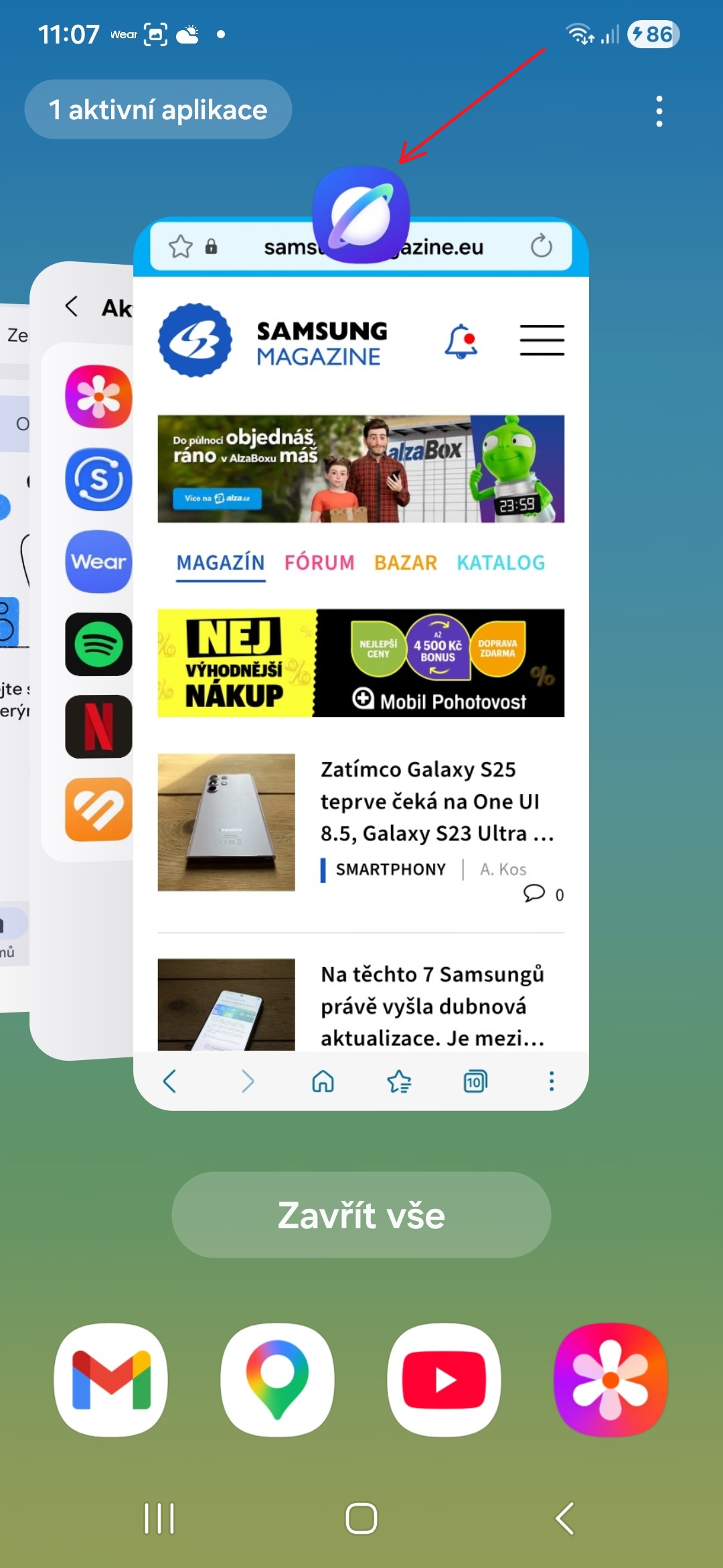 - Klepněte na ikonu aplikace, kterou jste předtím otevřeli.