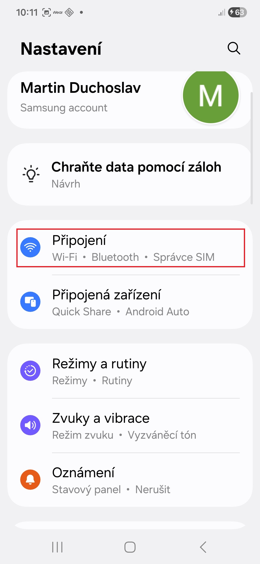 - Jděte do Nastavení→Připojení.