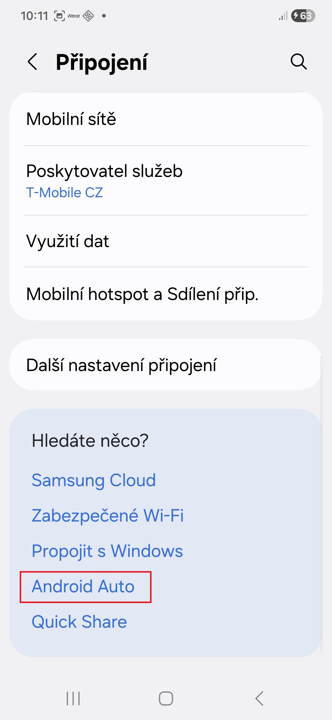 - Dole v sekci „Hledáte něco?“ klepněte na možnost Android Auto.